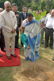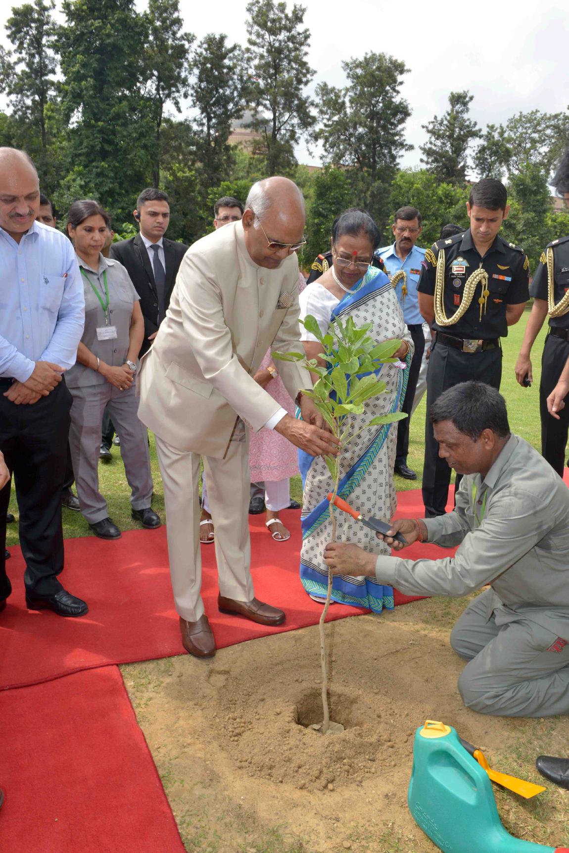 | Caption: | The President of India, Shri Ram Nath Kovind and the First Lady of India, Smt. Savita Kovind planting saplings, at Herbal Garden-II of Rashtrapati Bhavan on September 21, 2017. |