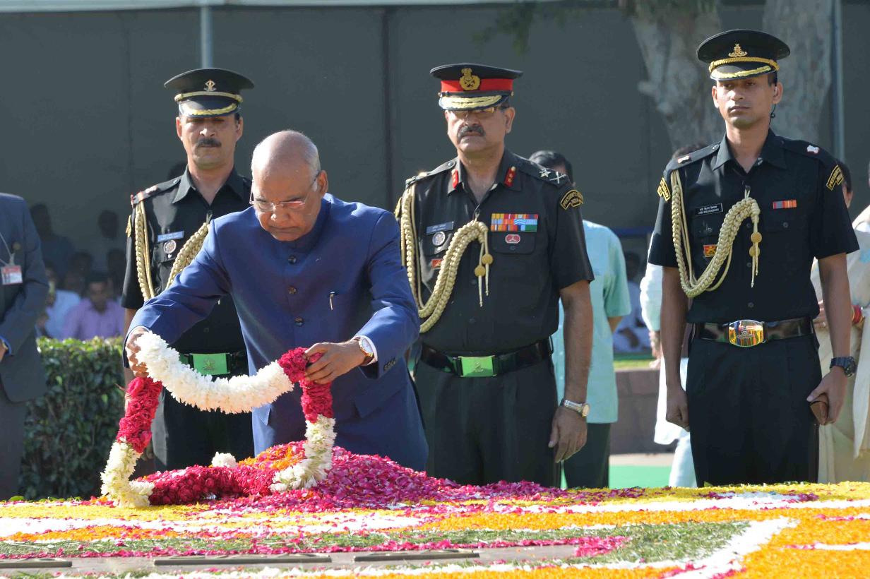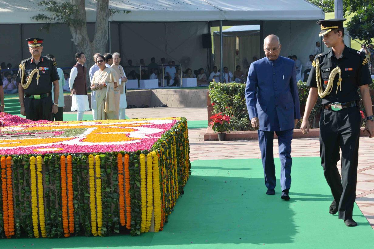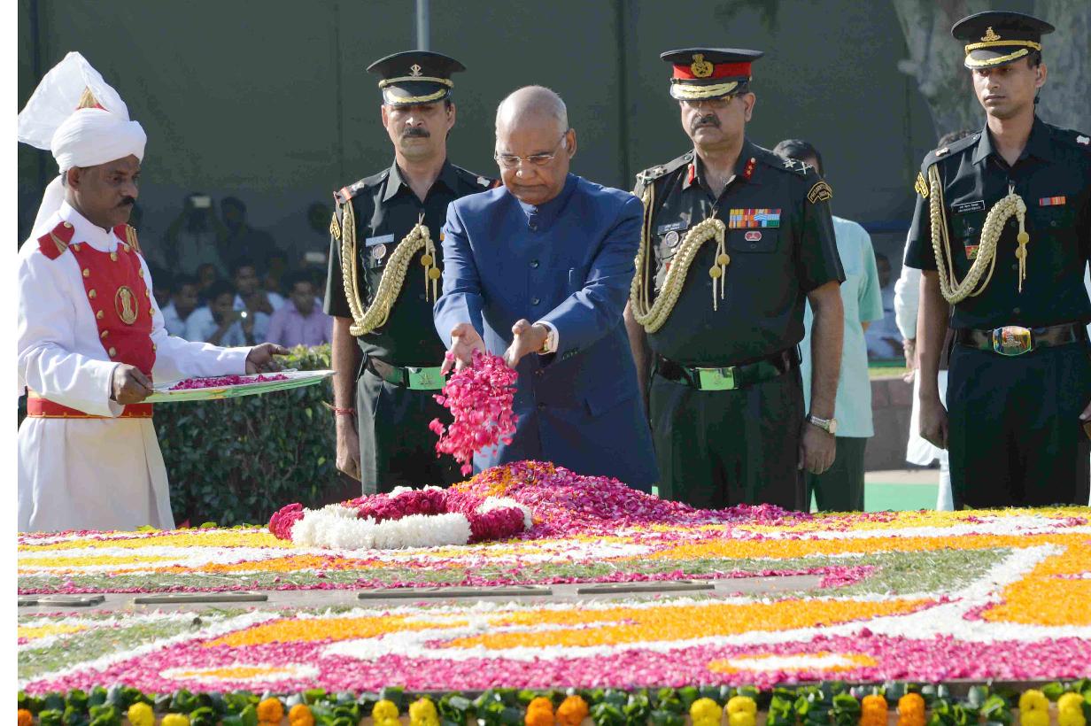 | Caption: | The President of India, Shri Ram Nath Kovind paying floral tributes at the Samadhi of the former Prime Minister of India, late Shri Lal Bahadur Shastri, on the occasion of his 113th Birth Anniversary, at Vijay Ghat, in New Delhi on October 02, 2017. |