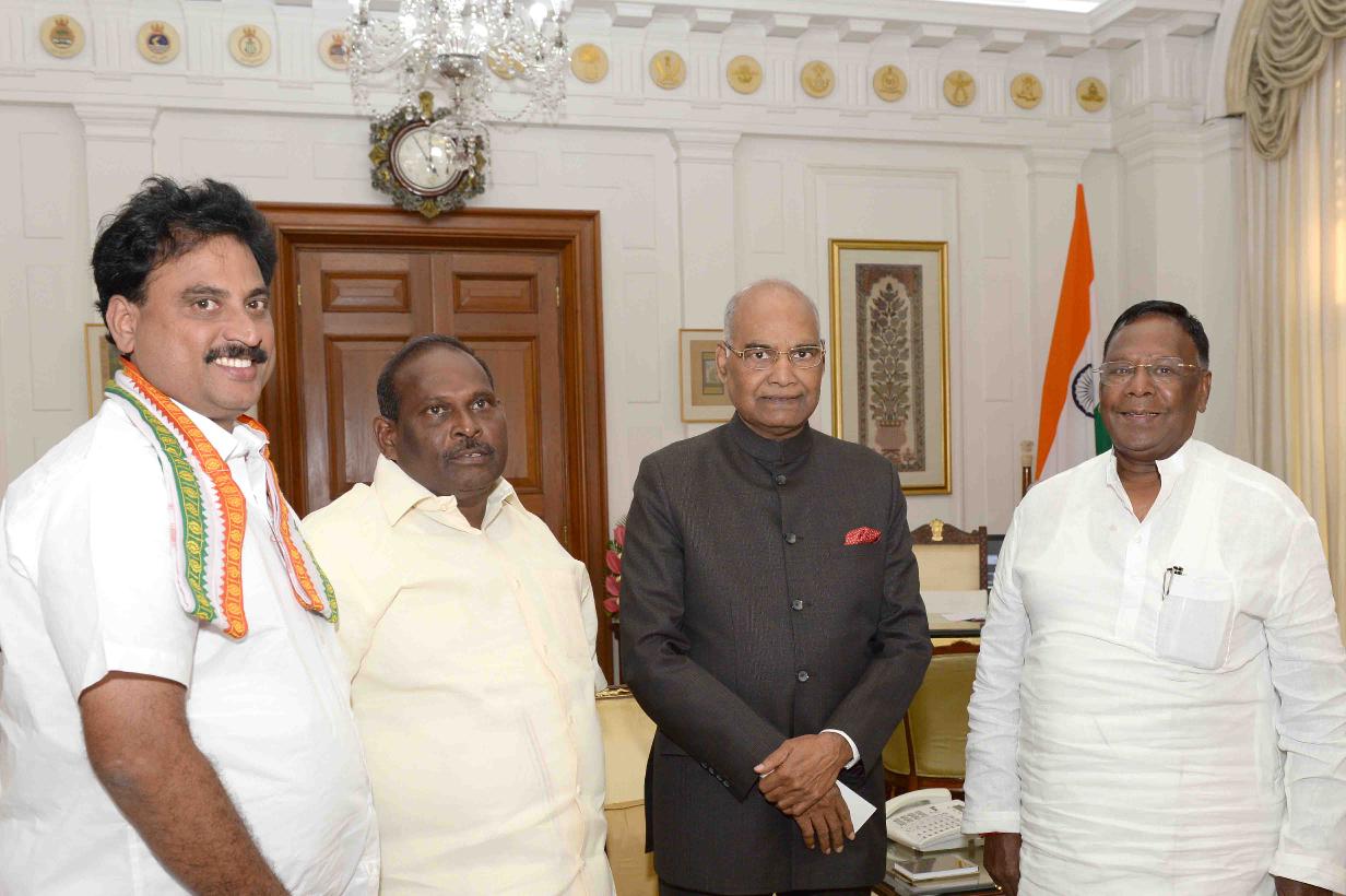 | Caption: | The Chief Minister of Puducherry, Shri V. Narayanasamy with others meeting with the President of India, Shri Ram Nath Kovind, at Rashtrapati Bhavan on September 26, 2017. |
