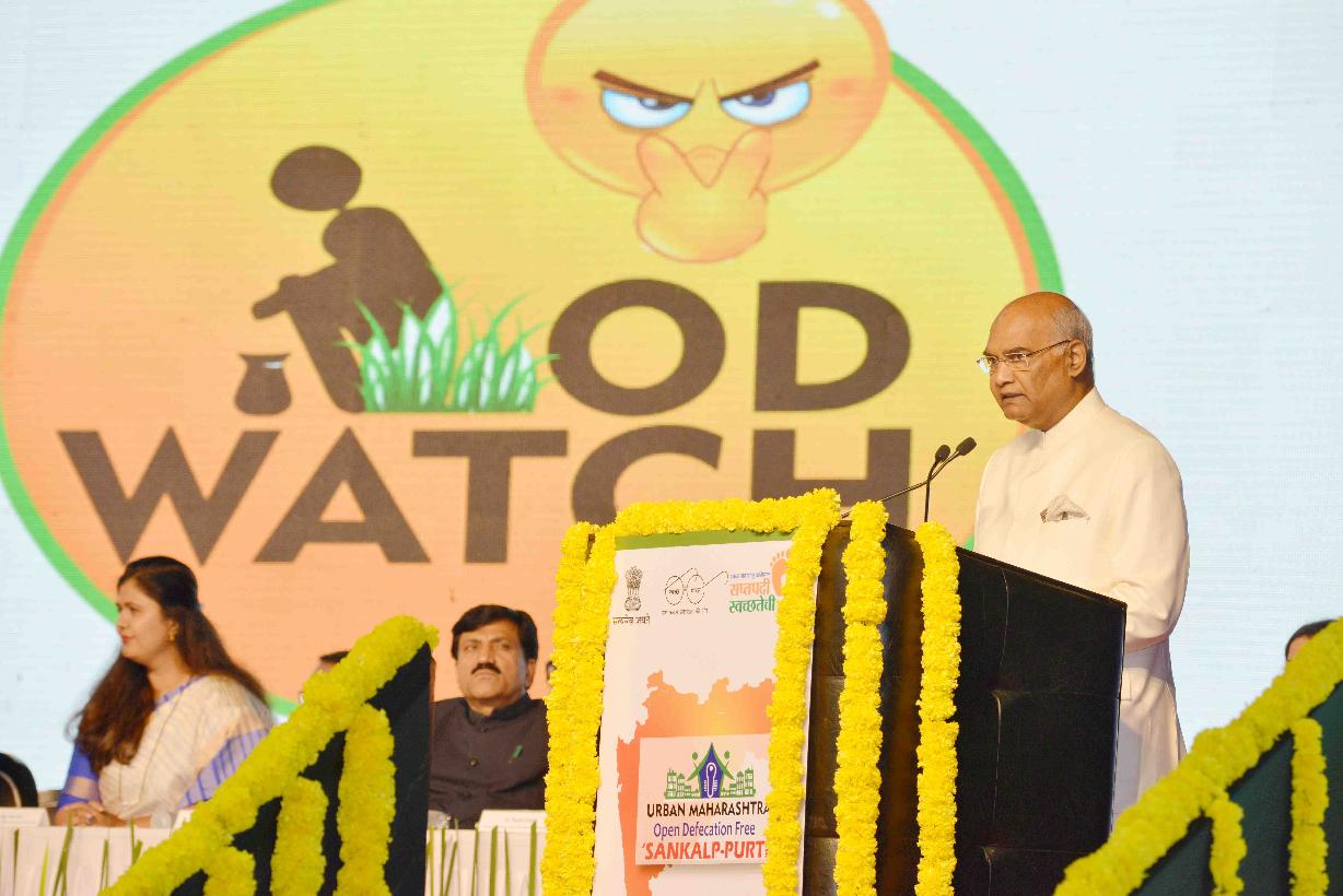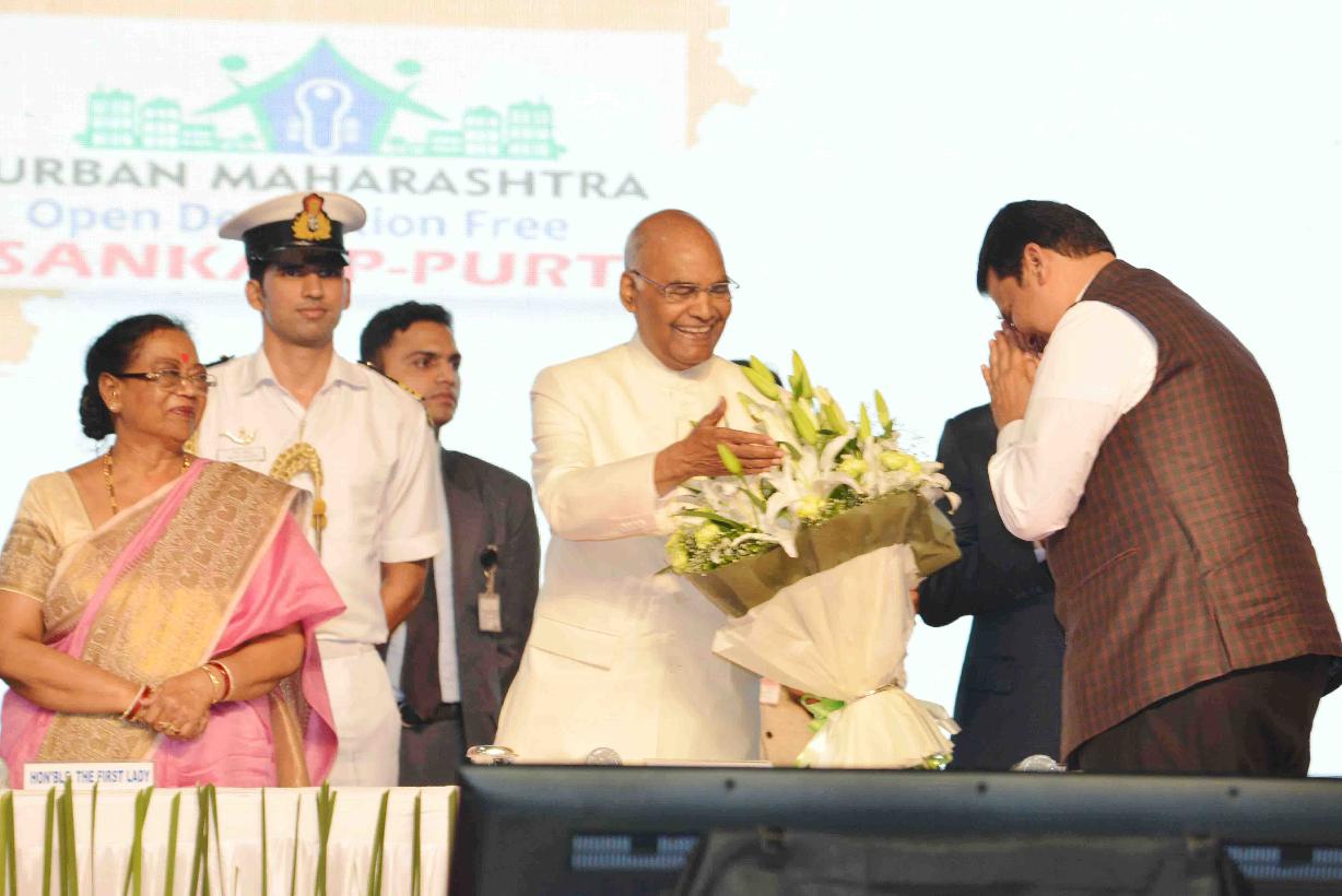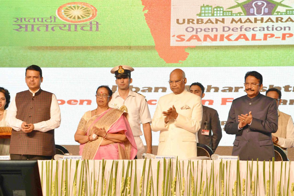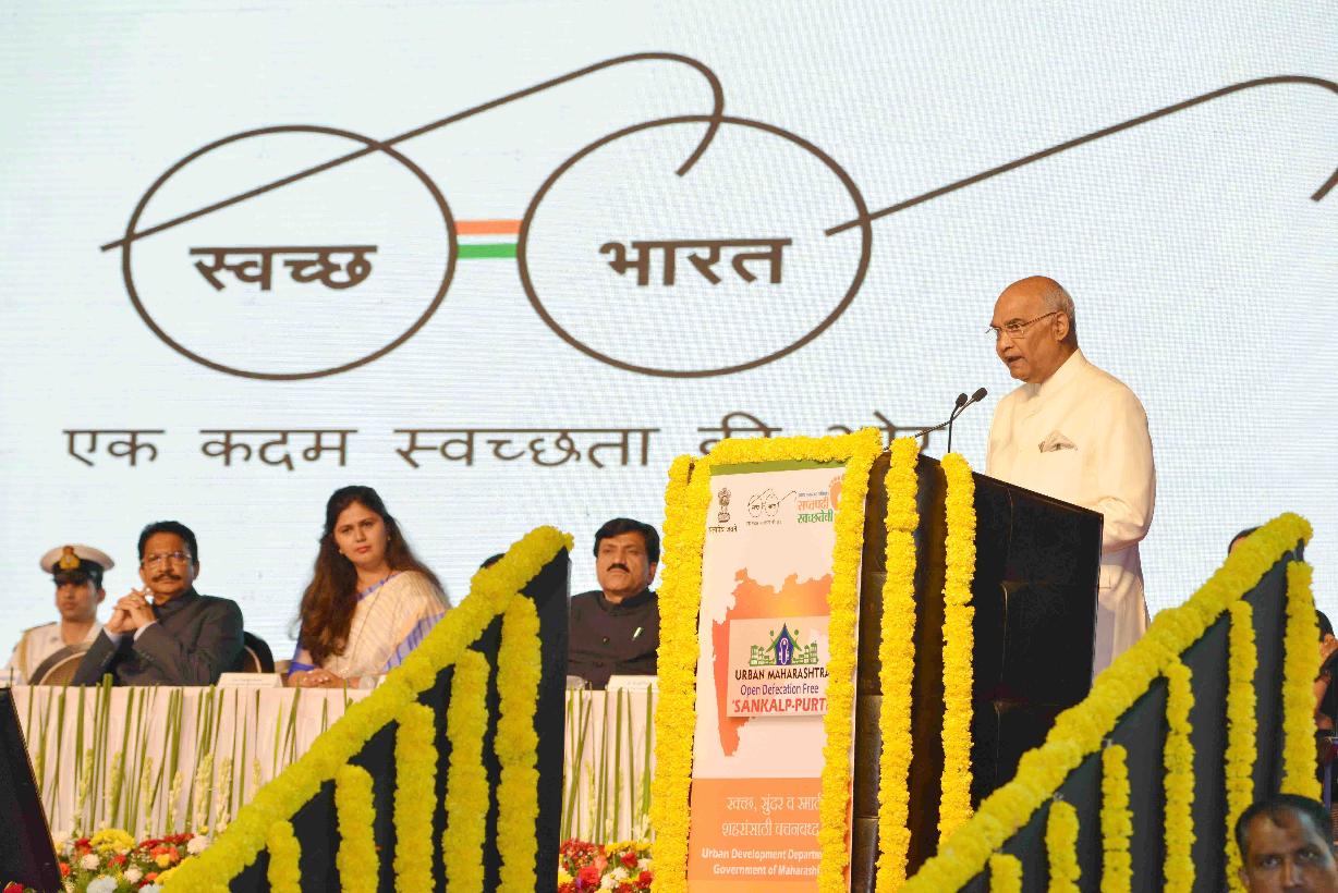 | Caption: | The President of India, Shri Ram Nath Kovind gracing the function organised to declare Open Defecation Free (ODF) of urban Maharashtra and felicitating the Stake holders of Swachh Maharashtra, at Mumbai, in Maharashtra on October 01, 2017. |
