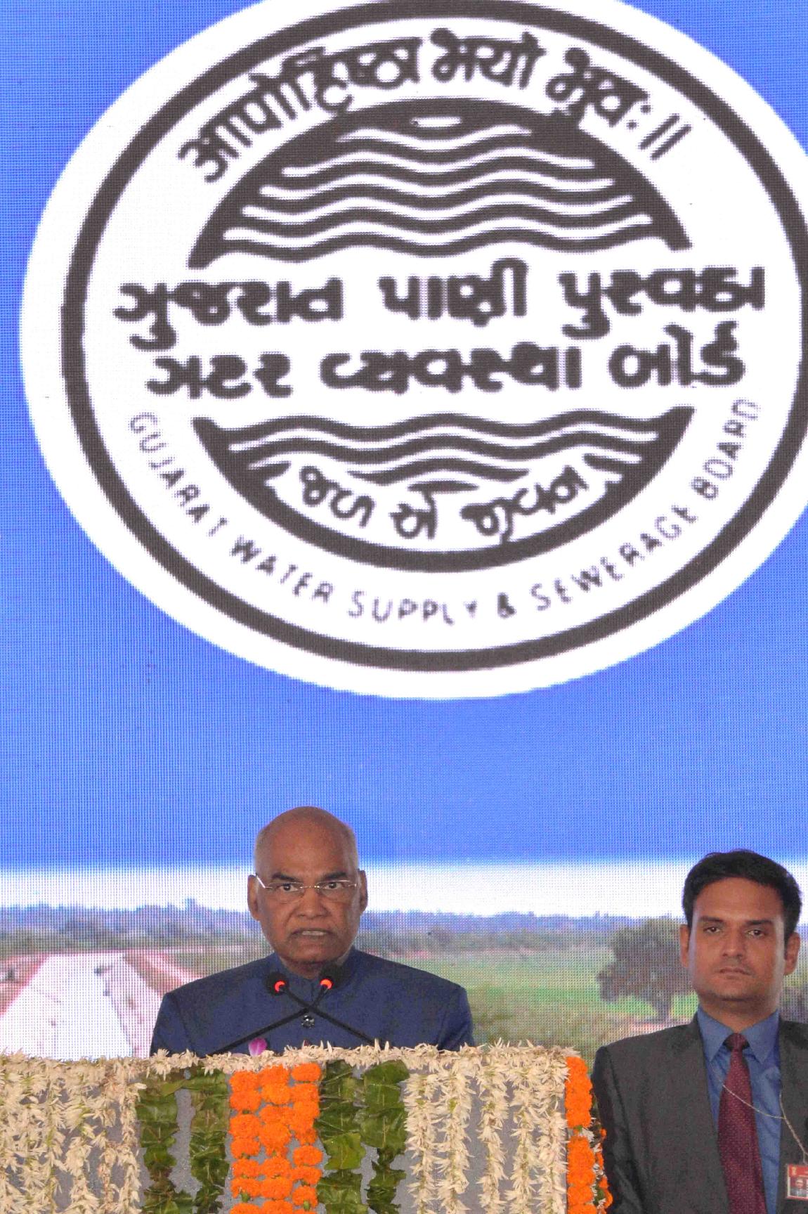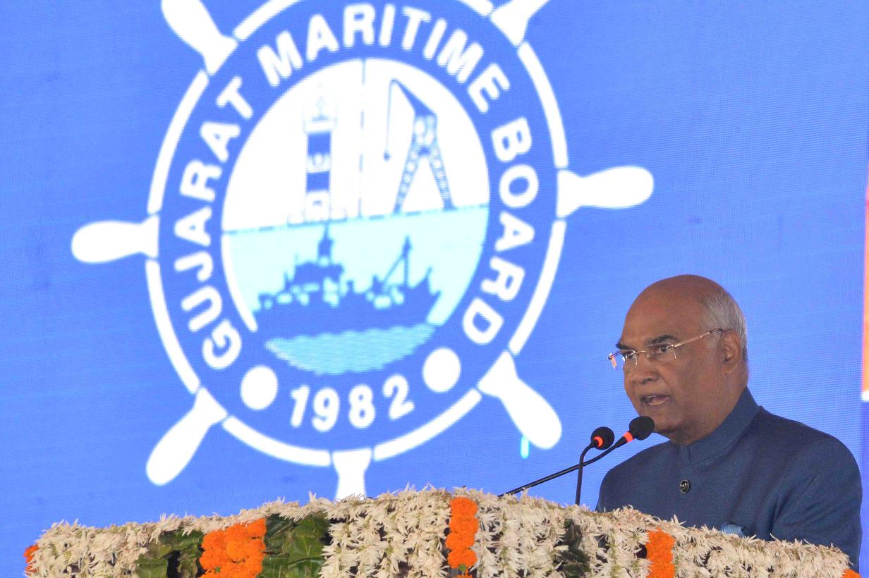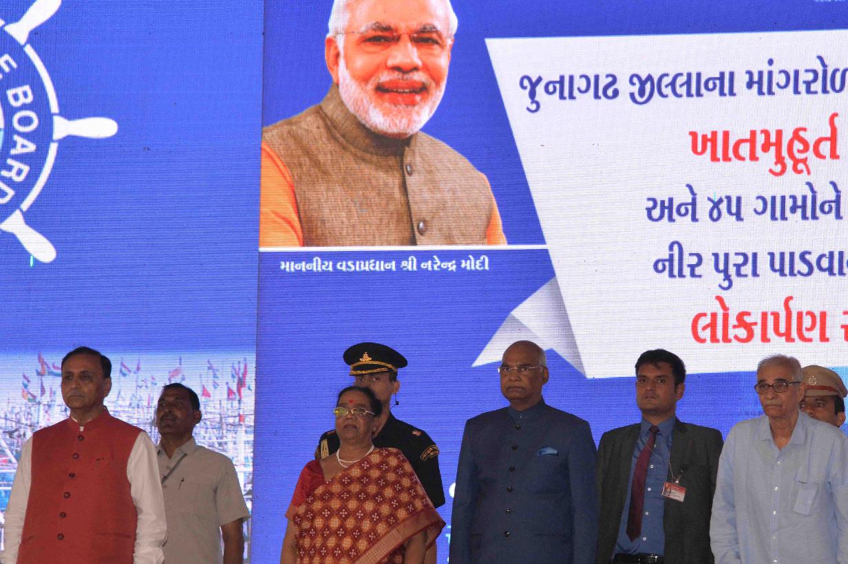 | Caption: | The President of India, Shri Ram Nath Kovind laid the foundation stone of various projects pertaining to the economic advancement of traditional fisherfolk communities, at Mangrol, in Gujarat on October 02, 2017. |