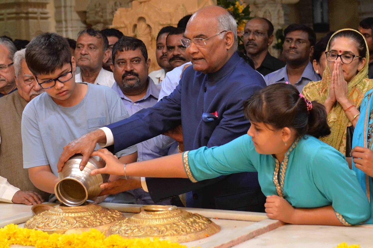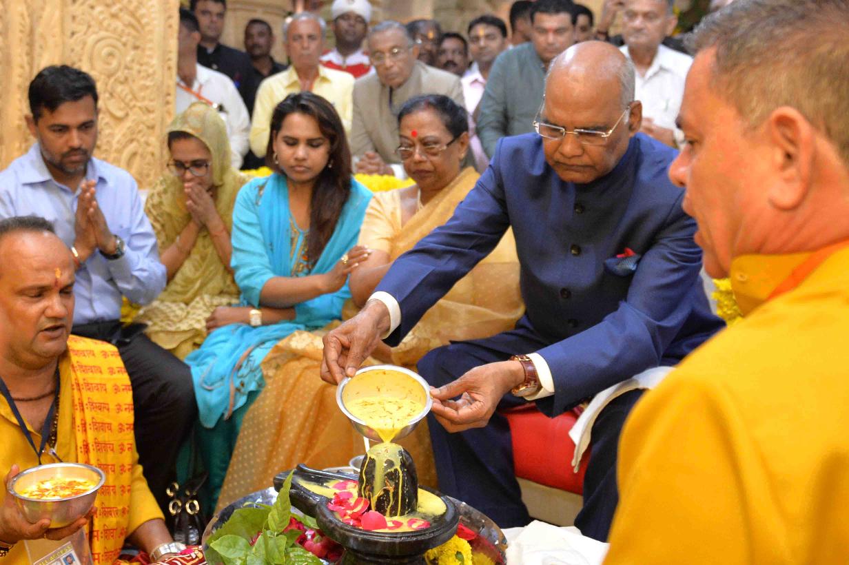 | Caption: | The President of India, Shri Ram Nath Kovind performing pooja at Somnath Temple, at Somnath, in Gujarat on October 02, 2017. |