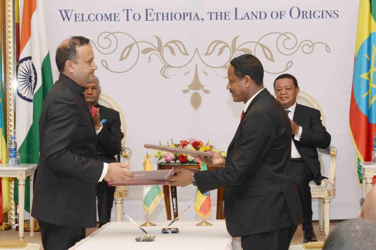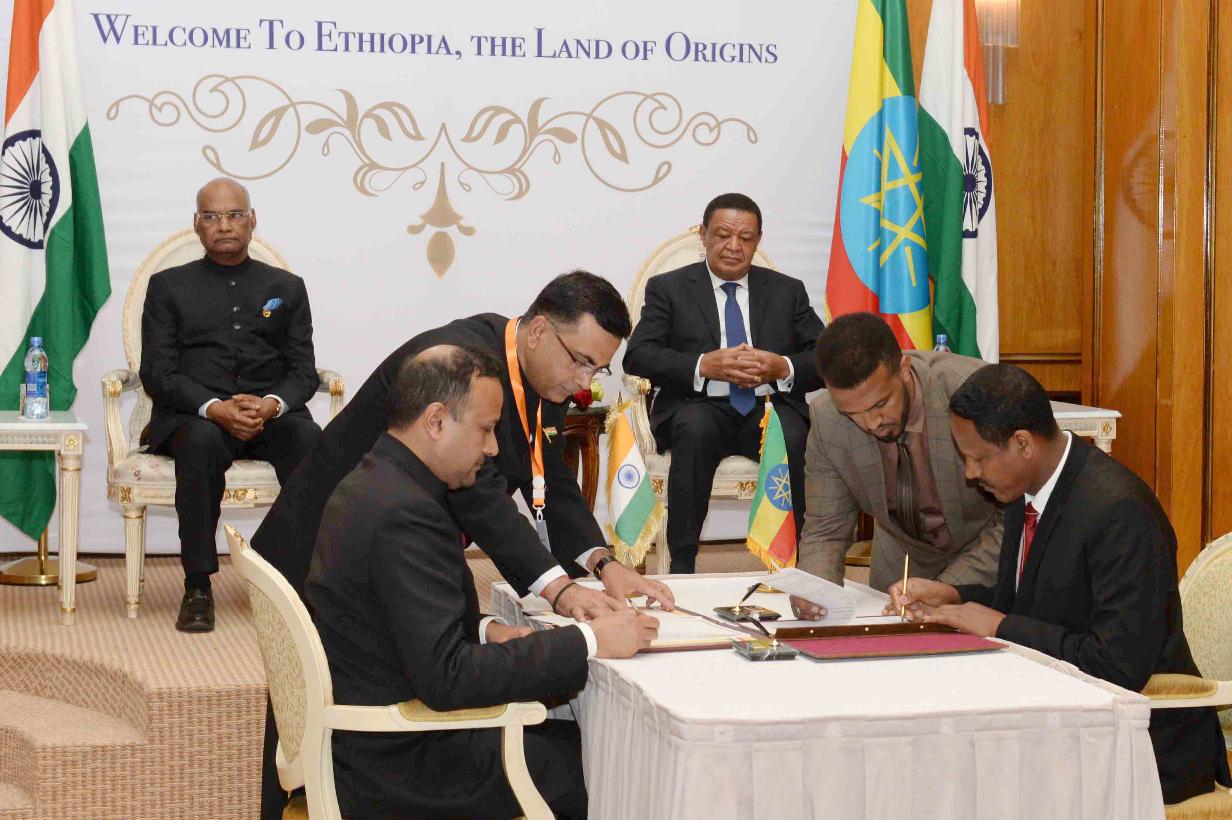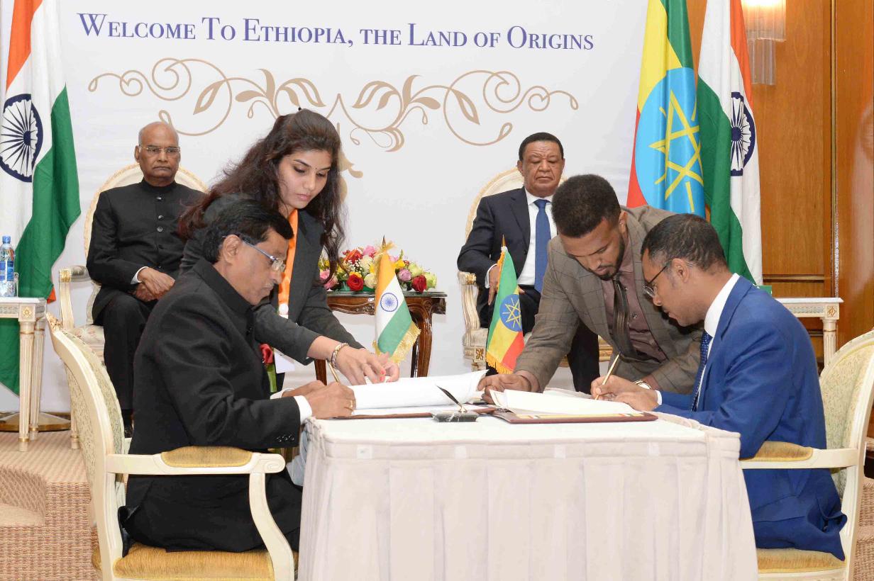 | Caption: | The President of India, Shri Ram Nath Kovind and the President of Ethiopia, H.E. Dr. Mulatu Teshome witnessing the signing of two Agreements between India and Ethiopia on Trade Facilitation and the second related to Information Communication and Media Sector, at Presidential Palace, Addis Ababa, in Ethiopia on October 05, 2017. |