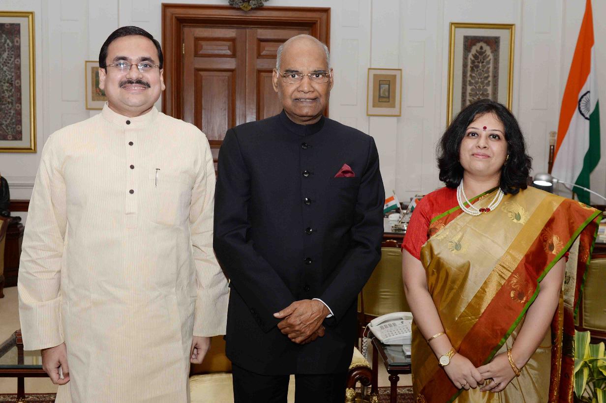 | Caption: | Smt. & Dr. Anirban Ganguly, Director, Dr. Shyama Prasad Mookerjee Research Foundation meeting with the President of India, Shri Ram Nath Kovind, at Rashtrapati Bhavan on October 16, 2017. |