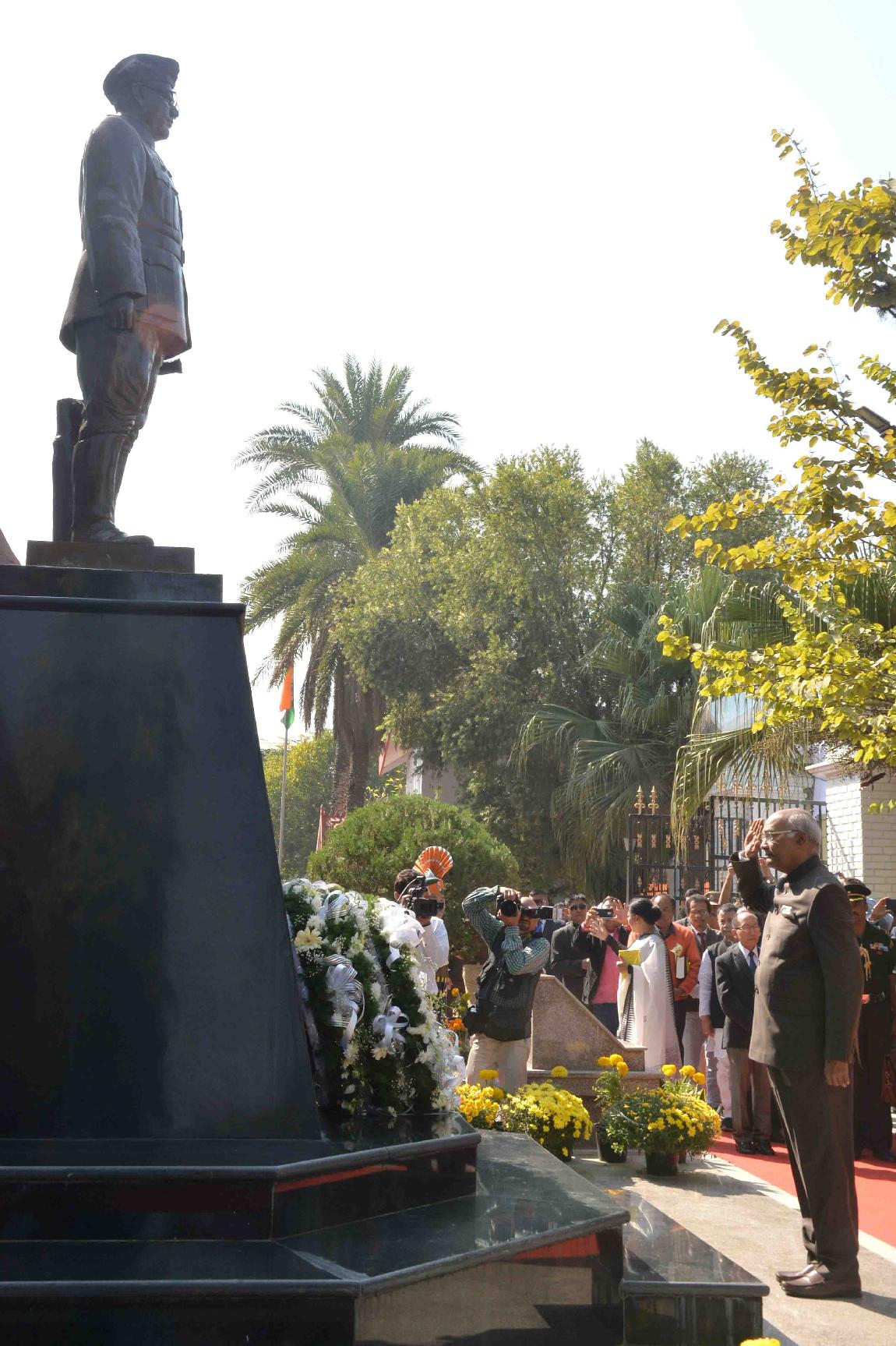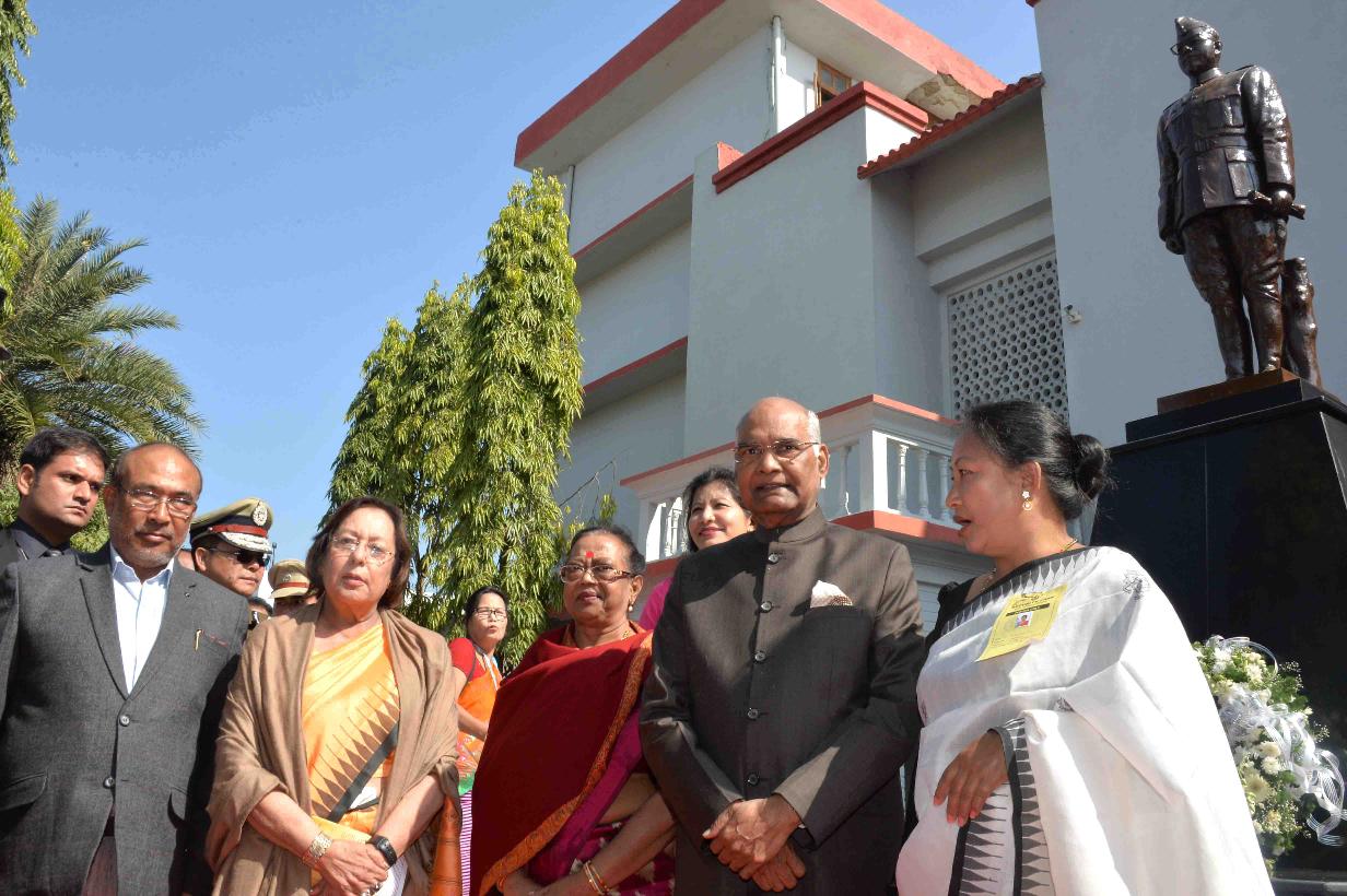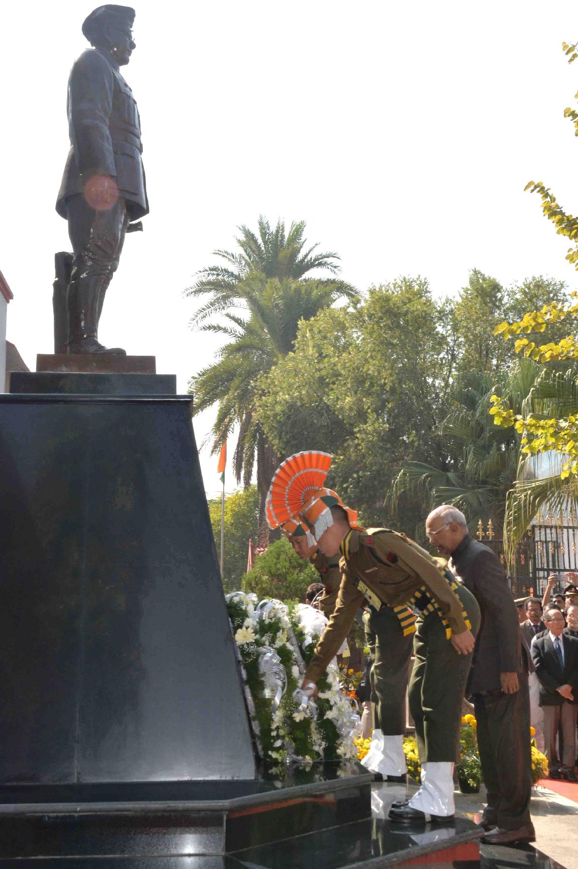 | Caption: | The President of India, Shri Ram Nath Kovind paying tributes to Netaji Subhas Chandra Bose, at INA War Memorial (INA Martyr s memorial), at Moirang, in Manipur on November 22, 2017. |