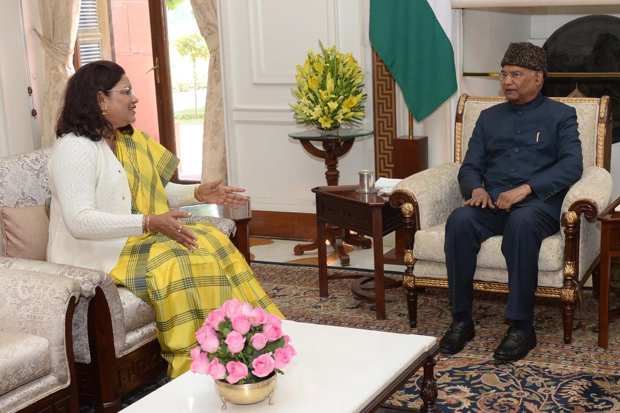 | Caption: | The Minister of State for Tribal Affairs, Smt. Renuka Singh meeting with the President of India, Shri Ram Nath Kovind, at Rashtrapati Bhavan on January 03, 2020. |