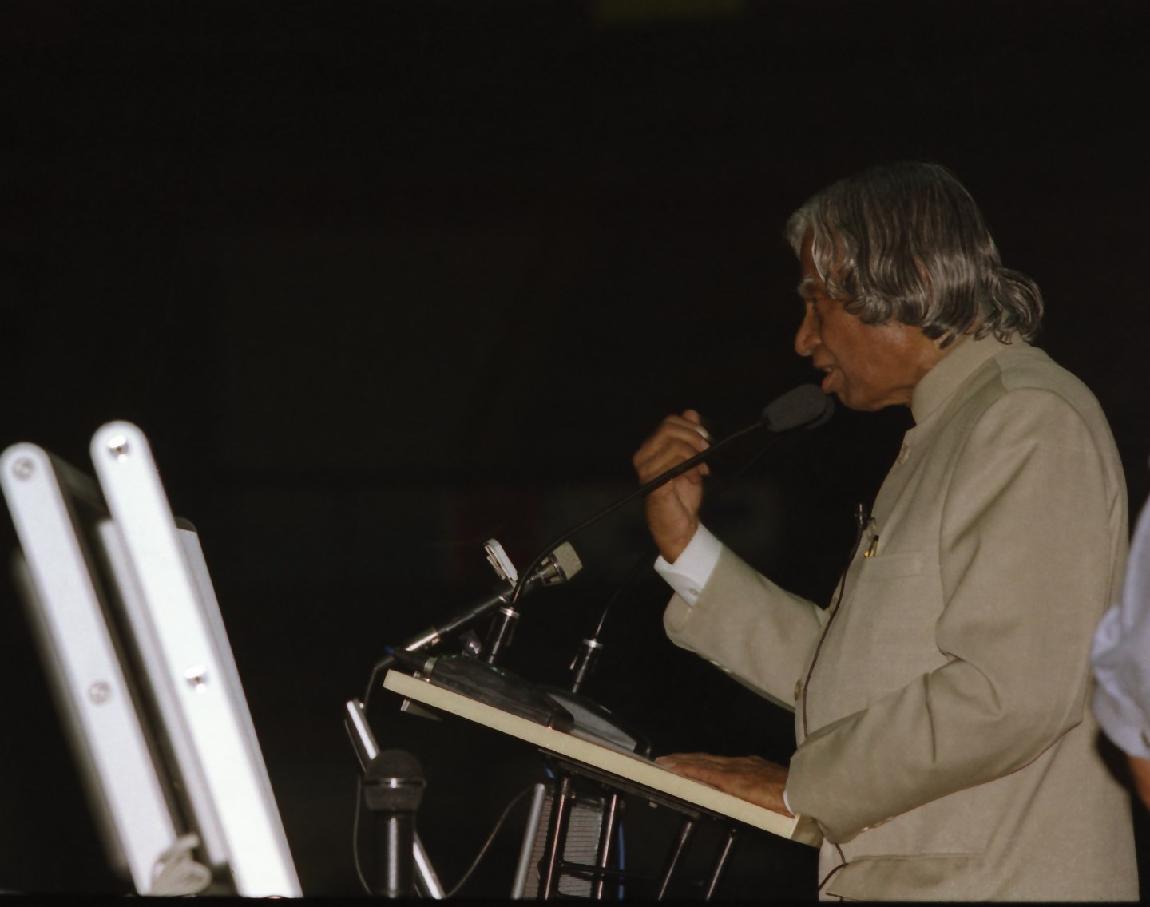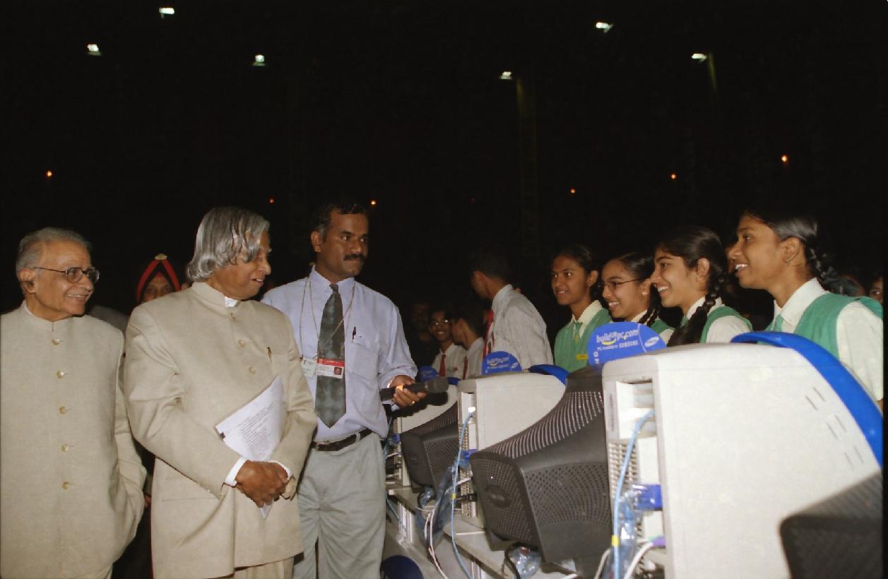 | Caption: | The President of India, Dr A P J Abdul Kalam meeting with the Students at Kanteerava Stadium at Bangalore in Karnataka on Oct 28, 2002 |