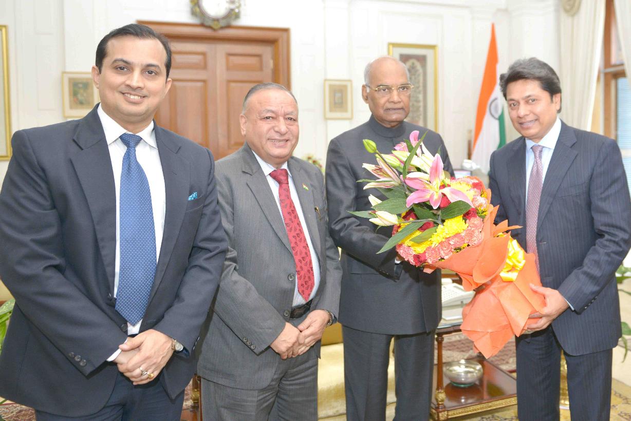 | Caption: | Shri Sandeep Jajodia, President, Shri Kiran Kumar Gandhi, Vice President and Shri D.S. Rawat, Secretary General, ASSOCHAM meeting with the President of India, Shri Ram Nath Kovind, at Rashtrapati Bhavan on September 25, 2017. |
