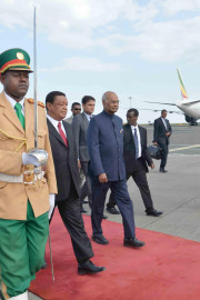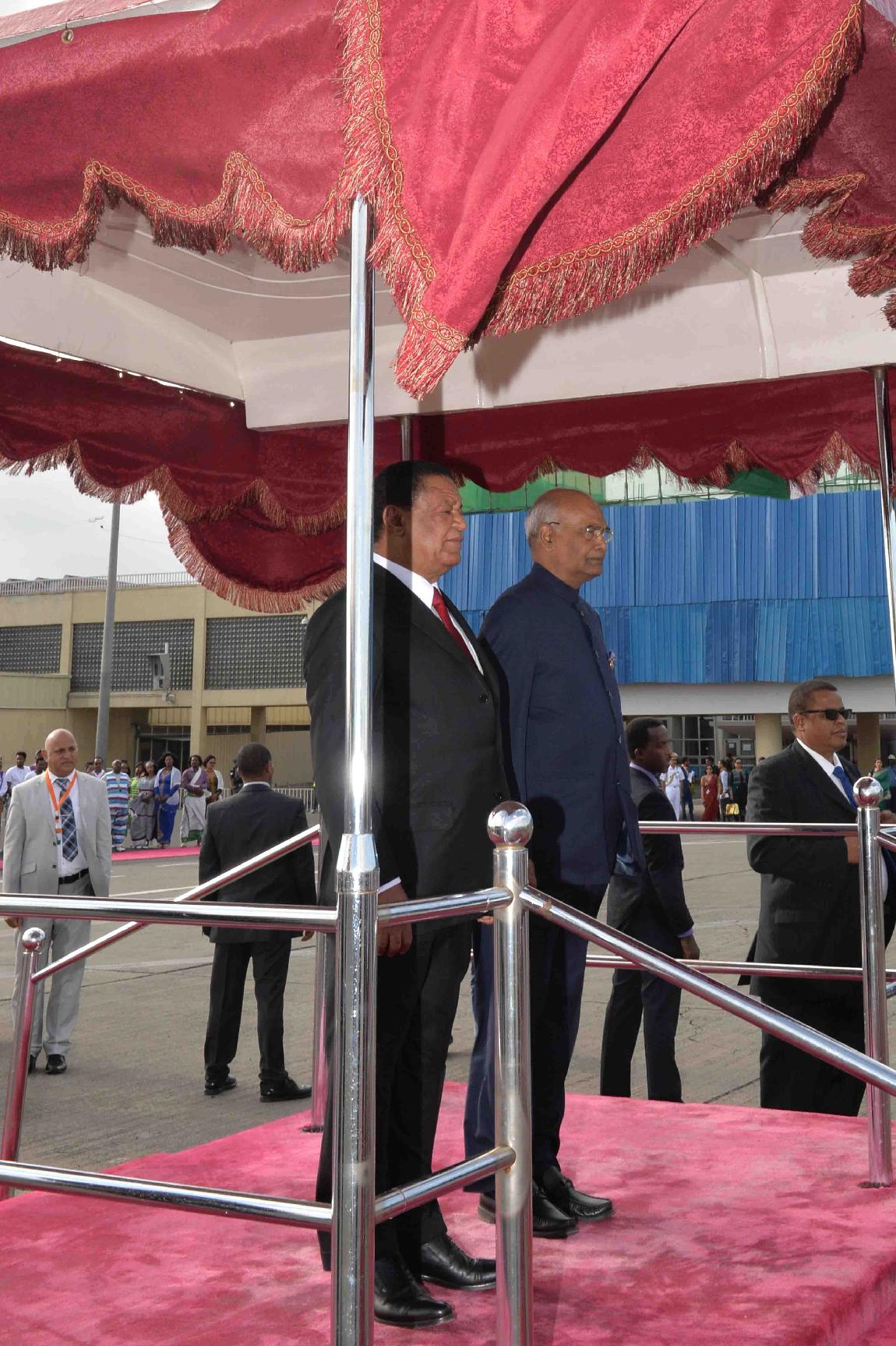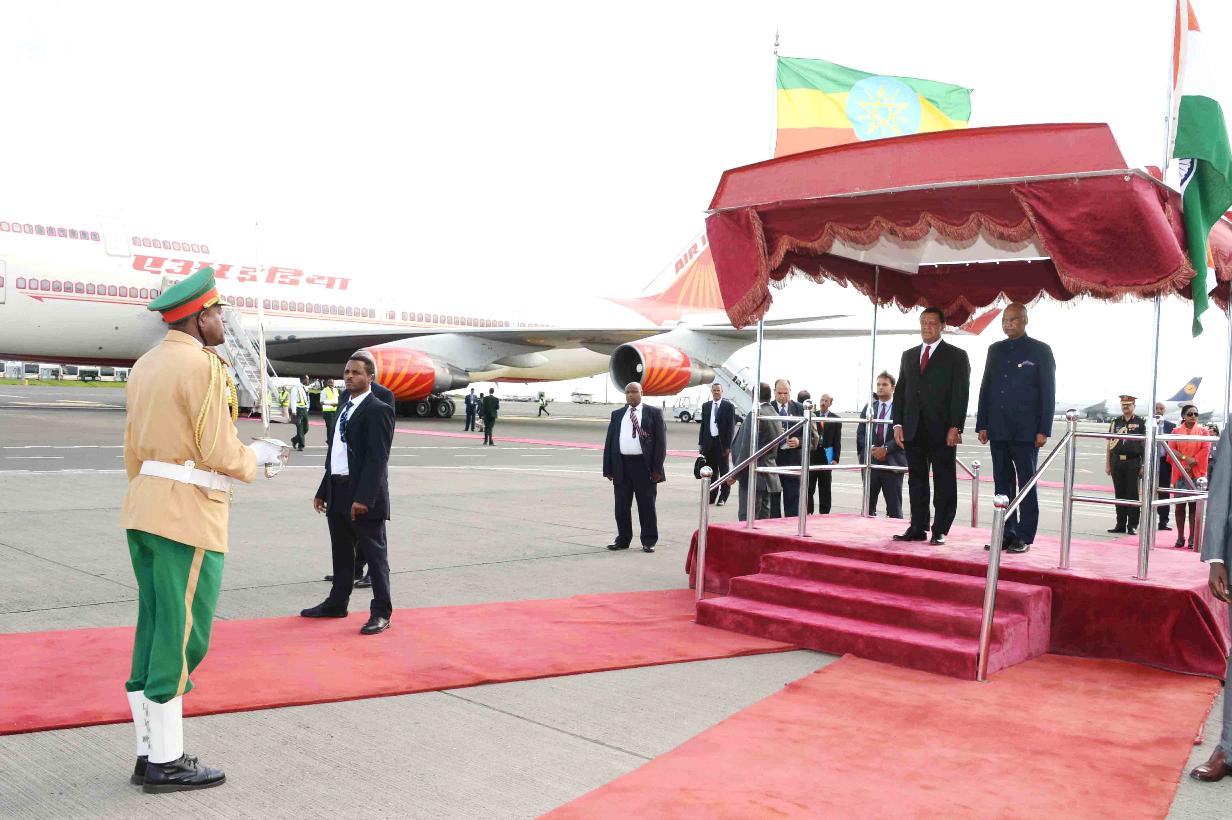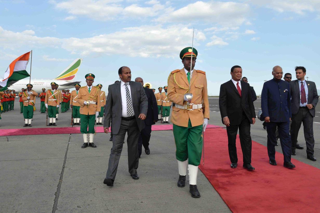 | Caption: | The President of India, Shri Ram Nath Kovind inspecting the Guard of Honour, during Ceremonial Welcome, at Addis Ababa Bole International Airport, in Ethiopia on October 04, 2017. |