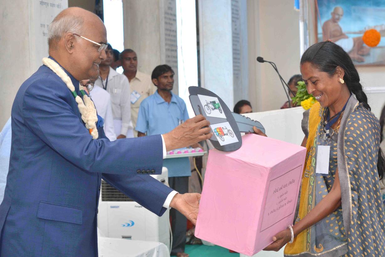 | Caption: | The President of India, Shri Ram Nath Kovind declaring ODF status for Rural Gujarat & launching Solid Waste Management Programme by handing over keys to Self Help Group, at Porbandar, in Gujarat on October 02, 2017. |