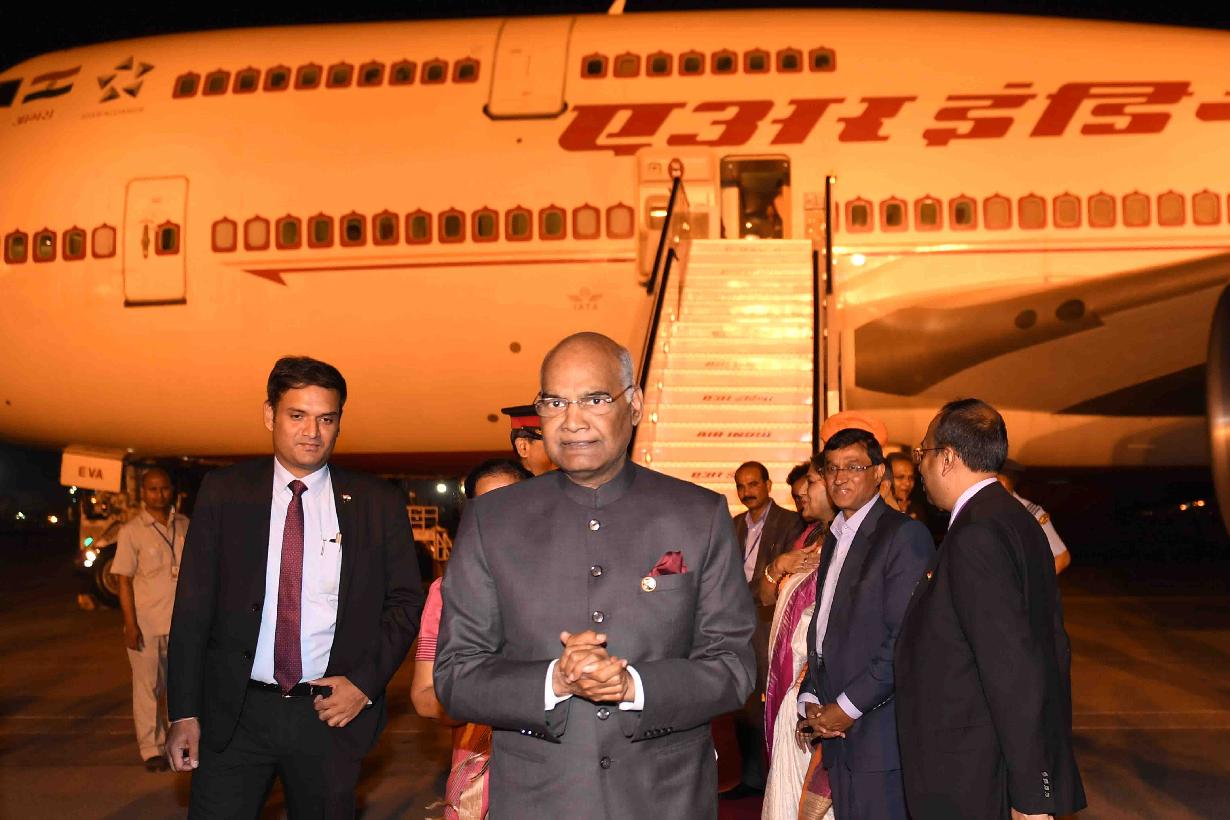 | Caption: | The President of India, Shri Ram Nath Kovind and the First Lady of India, Smt. Savita Kovind return Delhi after State Visits of Djibouti & Ethiopia on October 06, 2017. |