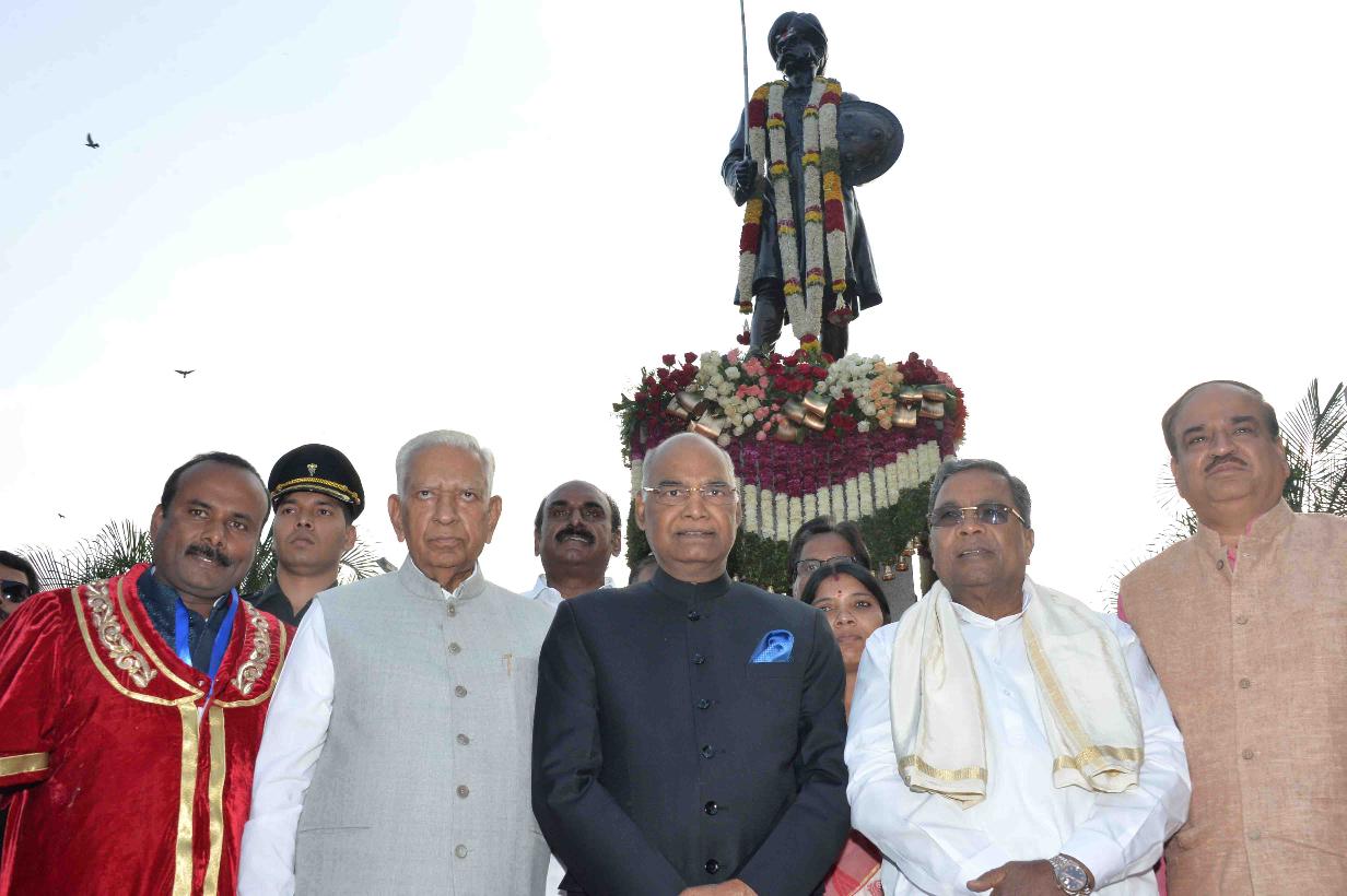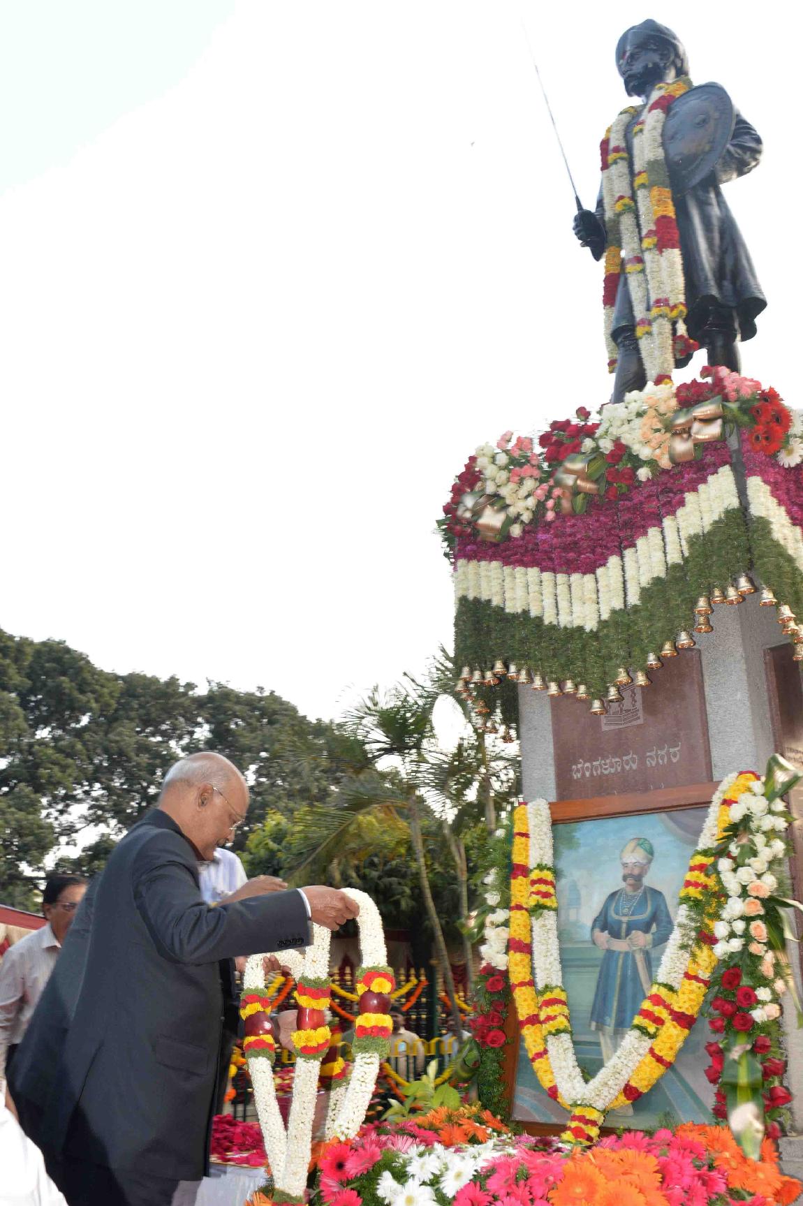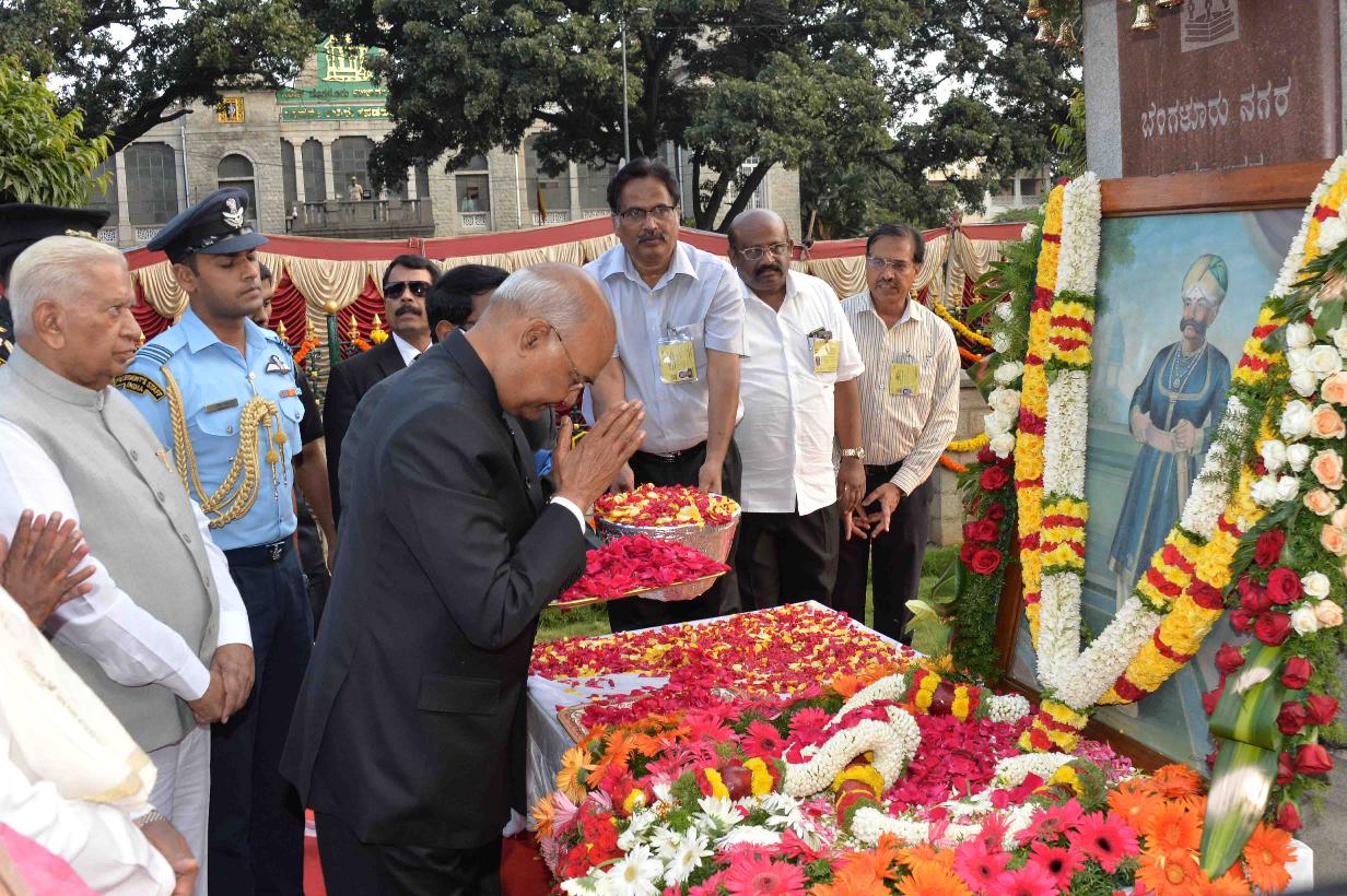 | Caption: | The President of India, Shri Ram Nath Kovind garlanding at the statue of Shri Kempegowda, in Bengaluru, Karnataka on October 24, 2017. |
