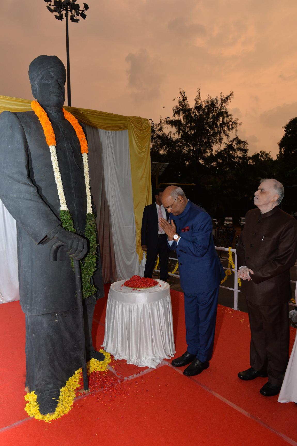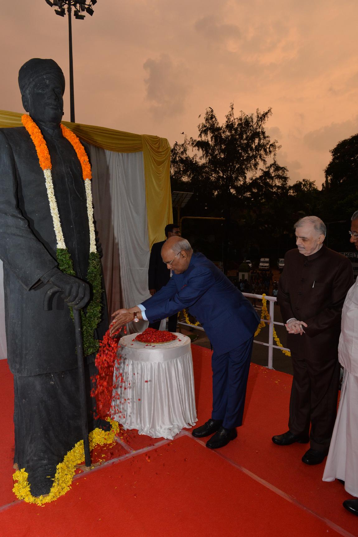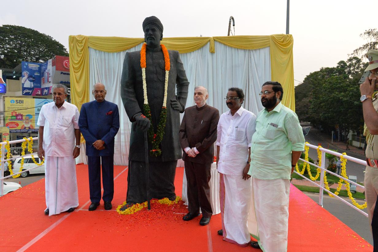 | Caption: | The President of India, Shri Ram Nath Kovind paying floral tributes at the statue of social reformer Ayyankali, at Thiruvanthapuram, in Kerala on October 27, 2017. |