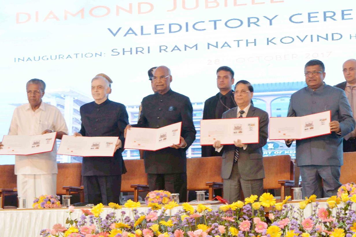| Caption: | The President of India, Shri Ram Nath Kovind releasing a Special Postal Cover, at the valedictory function of Diamond Jubilee Celebration of High Court of Kerala, at Kochi, in Kerala on October 28, 2017. |