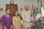 | Caption: | Shri Sunil Kumar Pathak alongwith his daughters meeting with the President of India, Shri Ram Nath Kovind, at Rashtrapati Bhavan on September 13, 2017. |