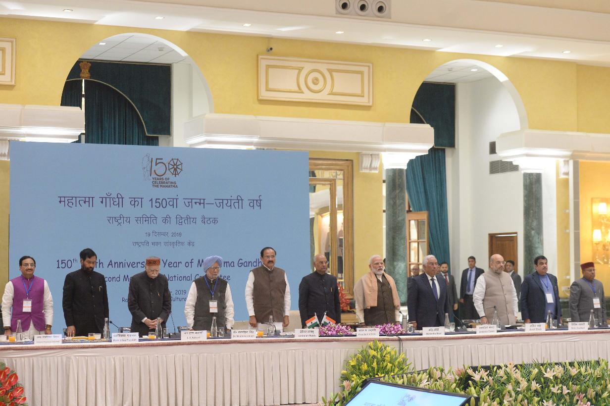 | Caption: | The President of India, Shri Ram Nath Kovind chairing the 2nd Meeting of National Committee for commemoration of 150th Birth Anniversary of Mahatma Gandhi, at Rashtrapati Bhavan Cultural Centre on December 19, 2019. |