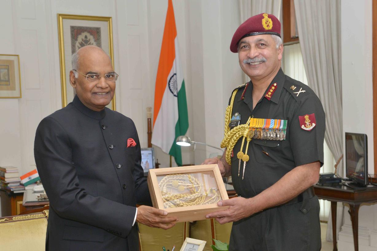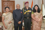 | Caption: | Lt. Gen. M.K. Unni, DG, AFMS, Delhi & Hony Surgeon to the President and Dr. Jyothi Unni meeting with the President of India, Shri Ram Nath Kovind, at Rashtrapati Bhavan on October 30, 2017. |