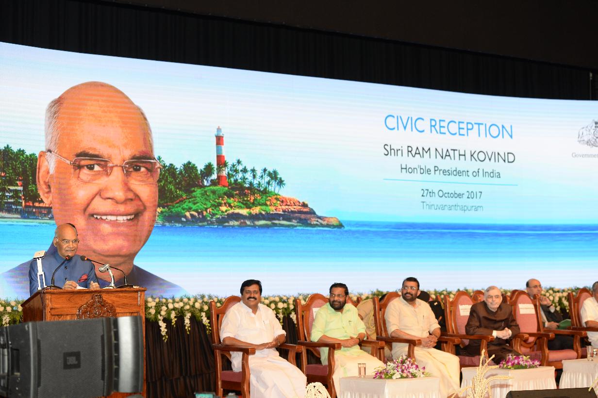 | Caption: | The President of India, Shri Ram Nath Kovind attending the Civic Reception, at Thiruvanthapuram, in Kerala on October 27, 2017. |