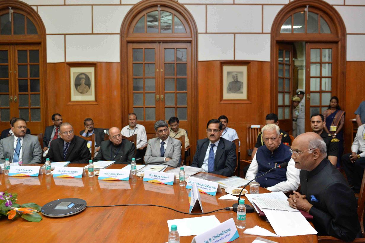 | Caption: | The President of India, Shri Ram Nath Kovind attending the roundtable discussion with the scientists, at the Indian Institute of Science (IISc), Bengaluru, in Karnataka on October 24, 2017. |
