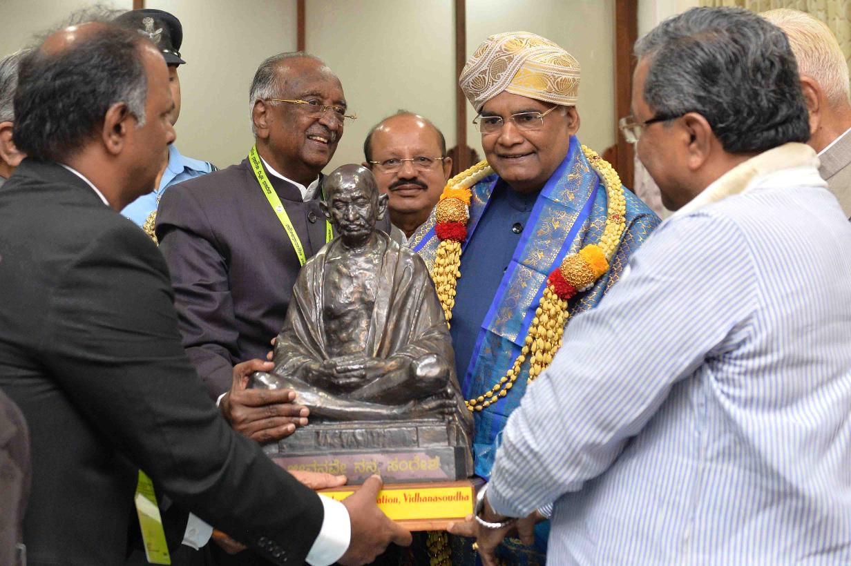 | Caption: | The President of India, Shri Ram Nath Kovind being felicitated, during visit at Karnataka Legislative Council, at Bengaluru, in Karnataka on October 25, 2017. |