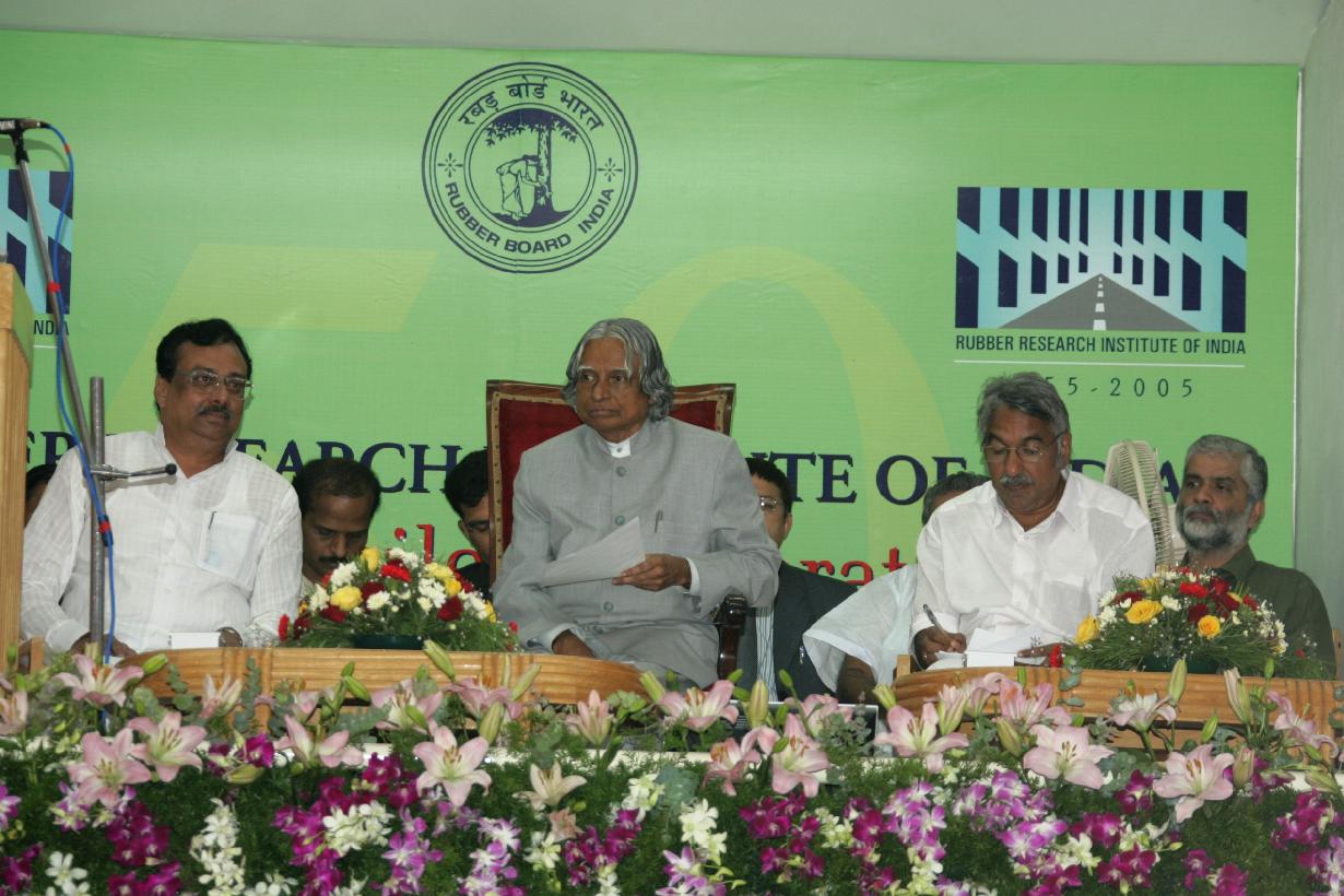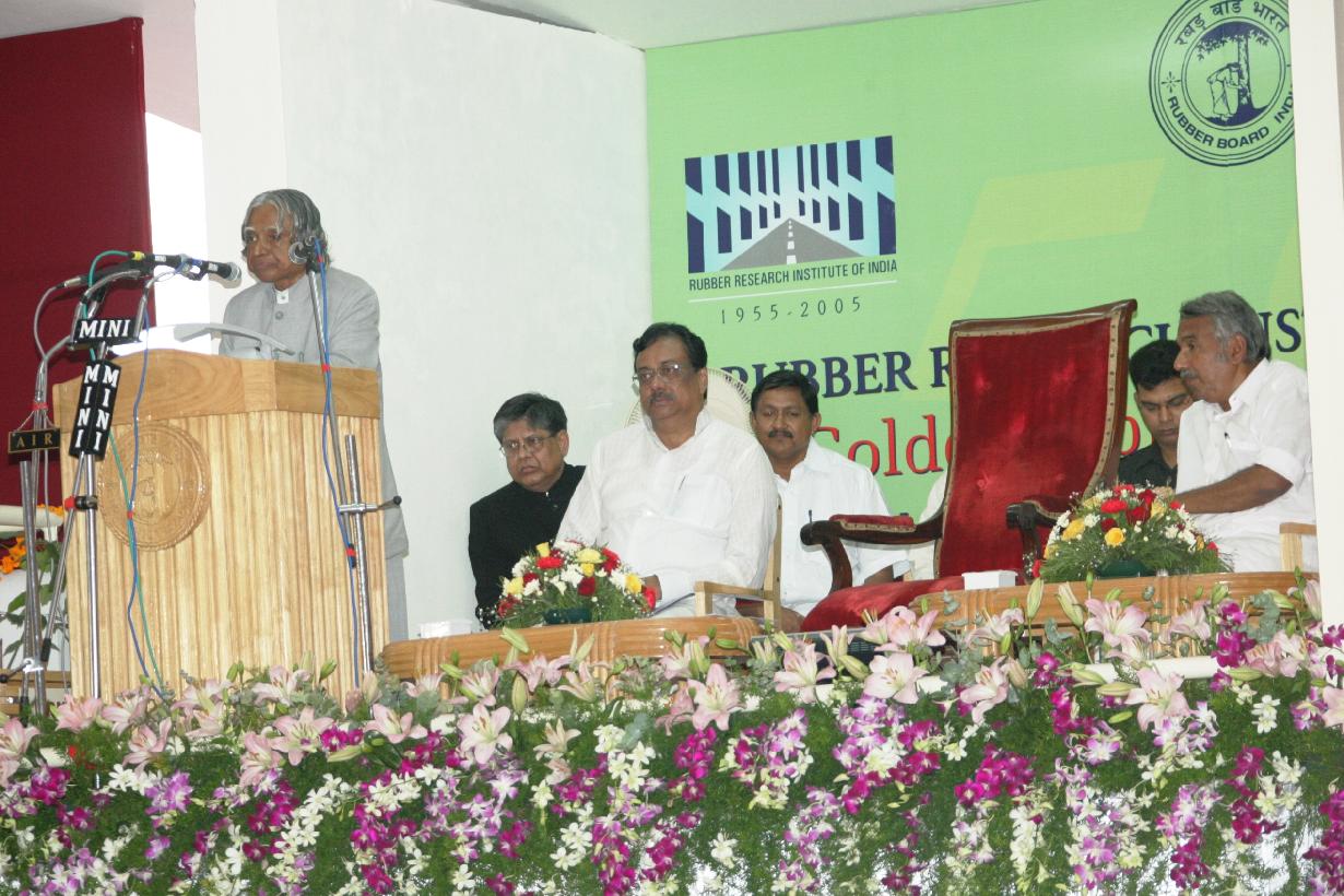 | Caption: | The President of India, Dr A P J Abdul Kalam addressing at the Golden Jubilee Celebrations of the Rubber Research Institute of India at Kottayam in Kerala on July 29, 2005 |