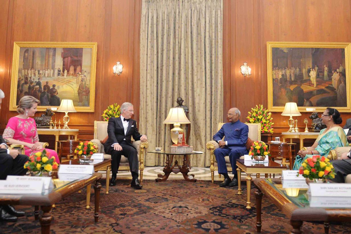 | Caption: | Their Majesties the King and the Queen of the Belgians calling on the President of India, Shri Ram Nath Kovind, at Rashtrapati Bhavan on November 07, 2017. |