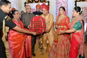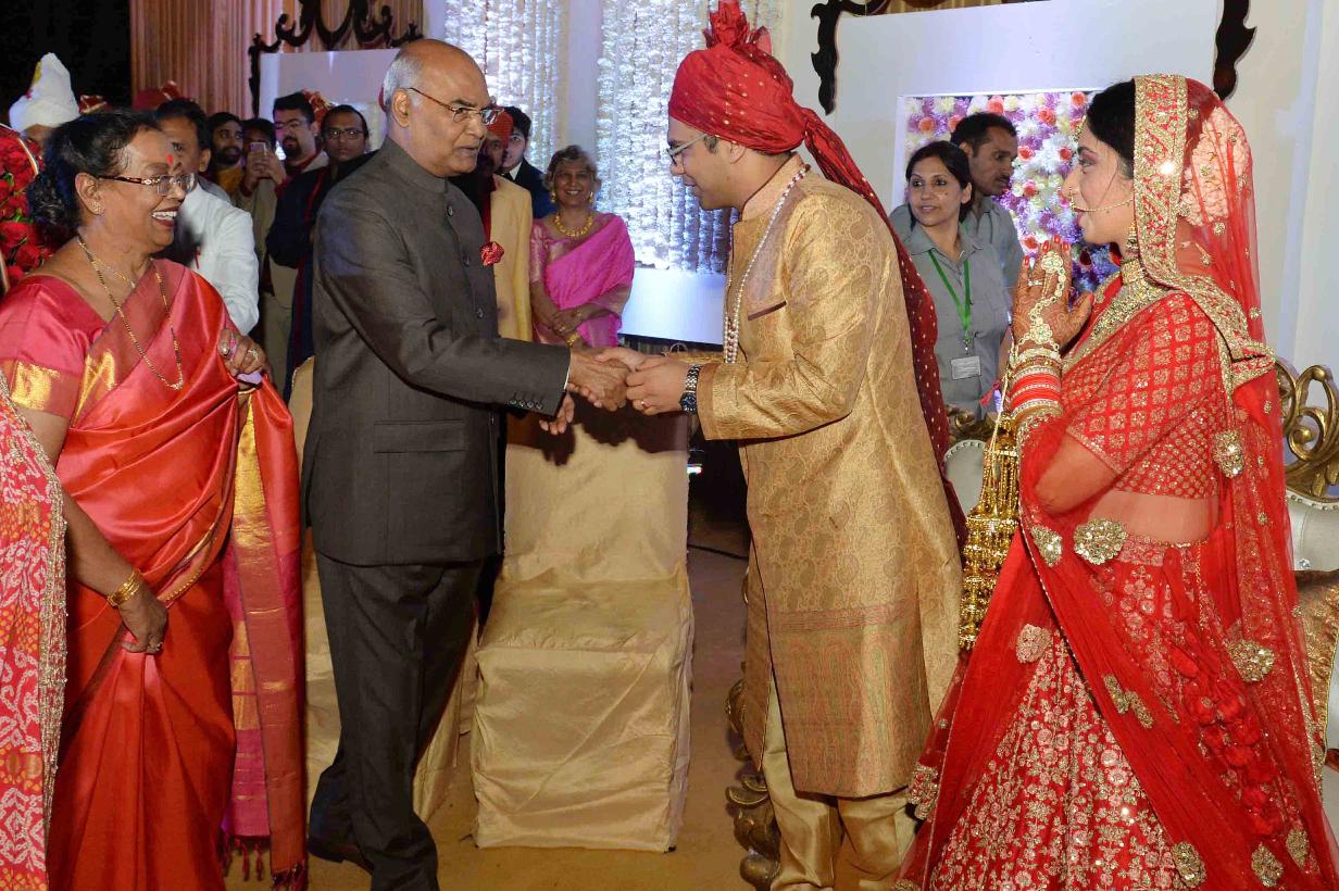 | Caption: | The President of India, Shri Ram Nath Kovind attending the Wedding Reception of Ms. Ishita, daughter of Shri Bharat Lal, Joint Secretary to the President, at President's Estate on November 04, 2017. |