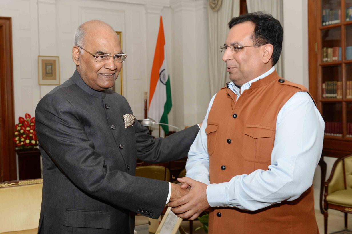 | Caption: | The Finance Minister, Govt. of Haryana, Capt. Abhimanyu meeting with the President of India, Shri Ram Nath Kovind, at Rashtrapati Bhavan on October 18, 2017. |