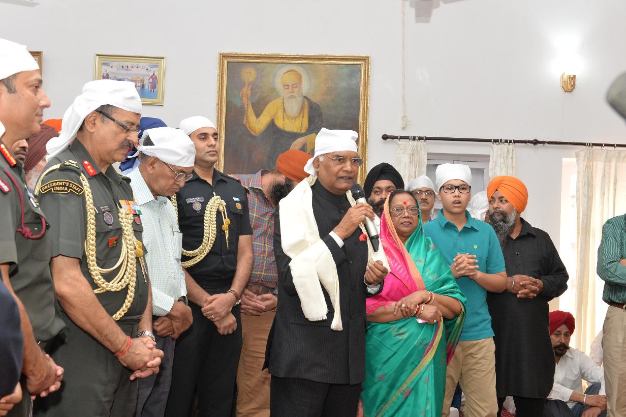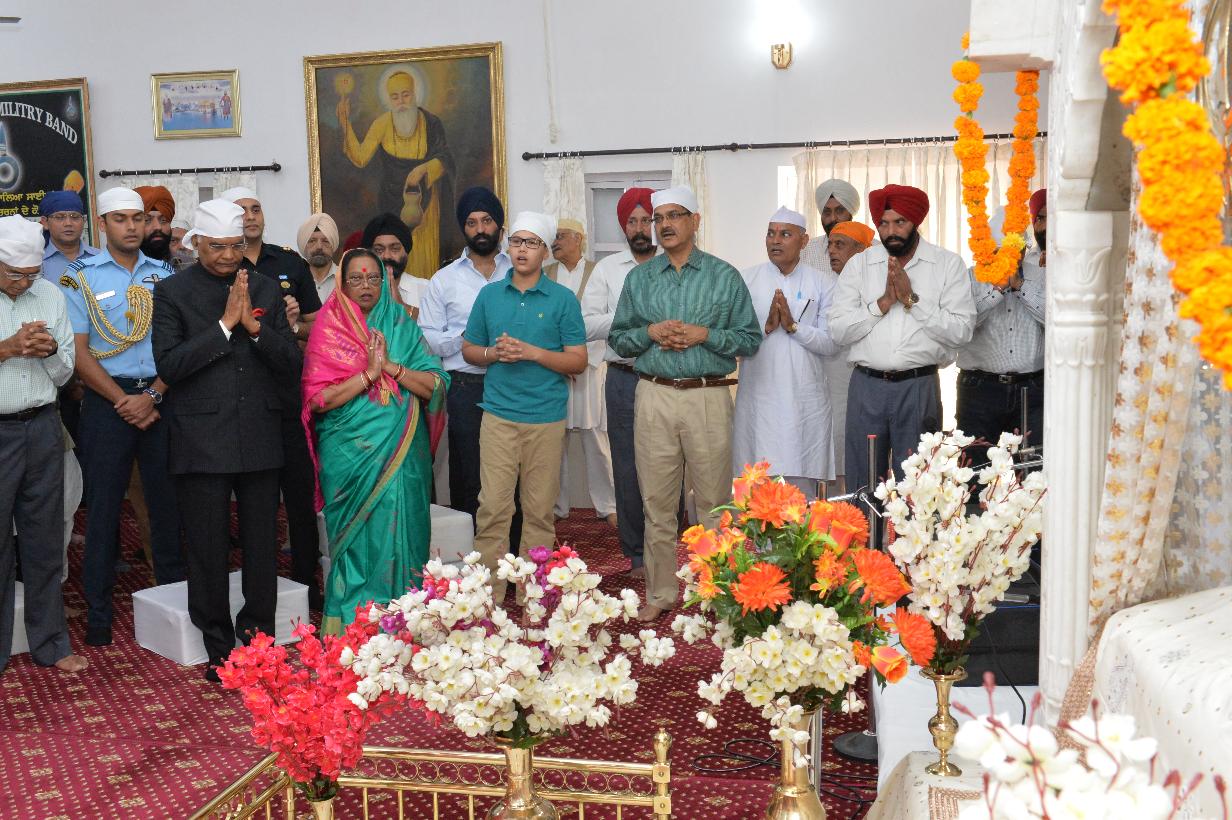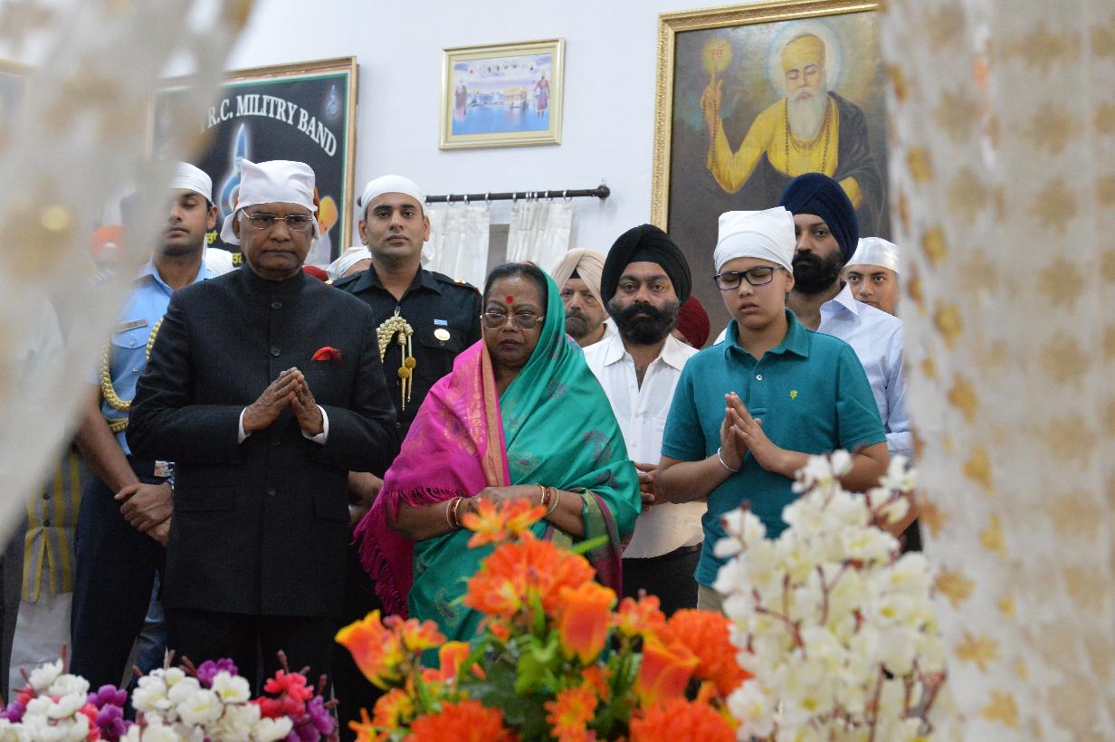 | Caption: | The President of India, Shri Ram Nath Kovind and First Lady visiting PBG Regimental Gurudwara on the occasion of Birthday Celebrations of Guru Nanak Devji, at President's Estate on November 04, 2017. |