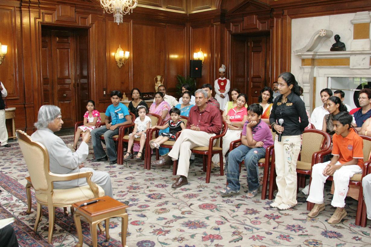 | Caption: | The President of India, Dr A P J Abdul Kalam interacting with the Smt Saroj Panwar and others at the Committee Room of Rashtrapati Bhavan in New Delhi on June 04, 2007 |