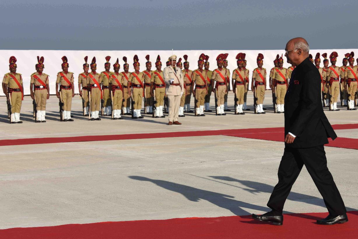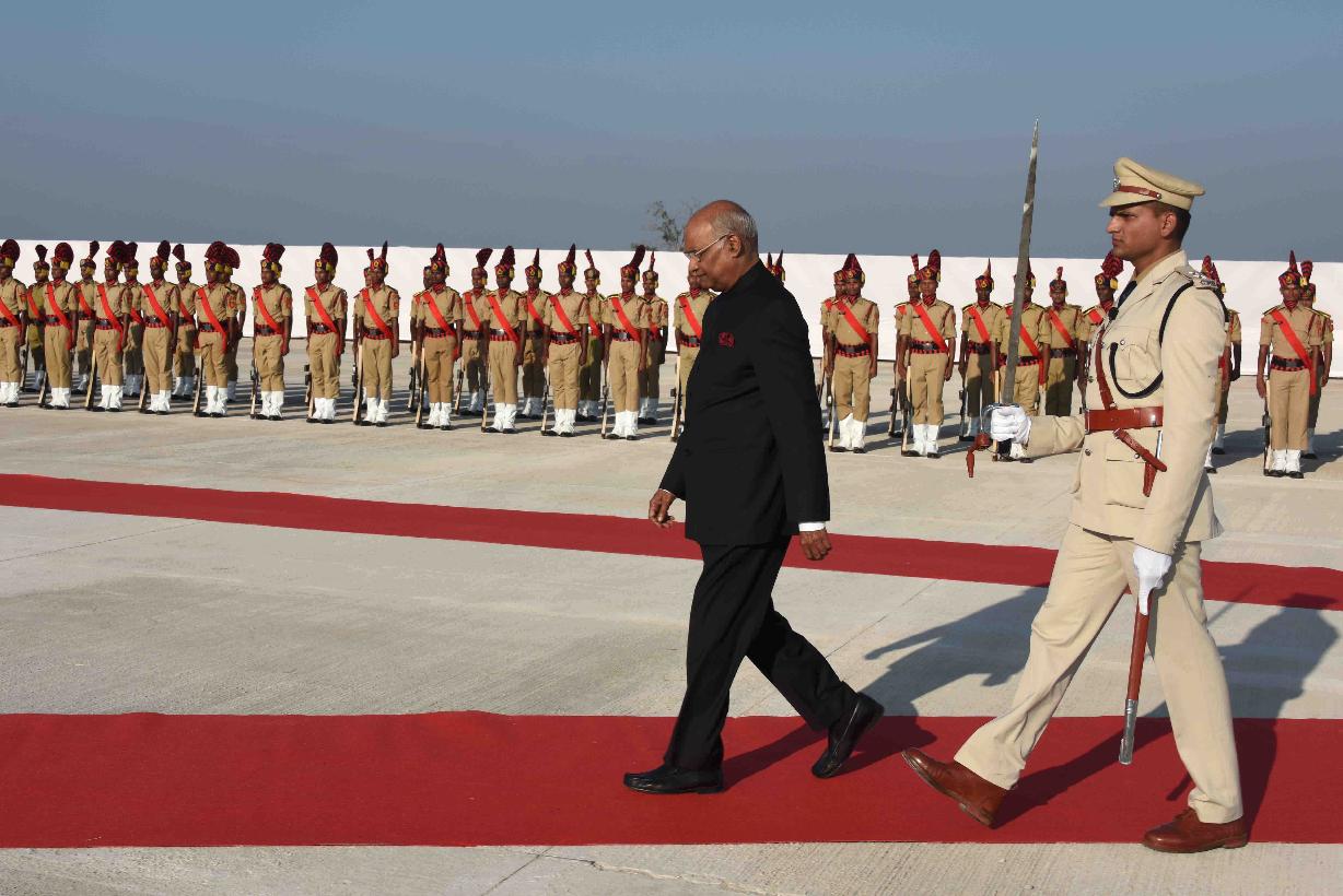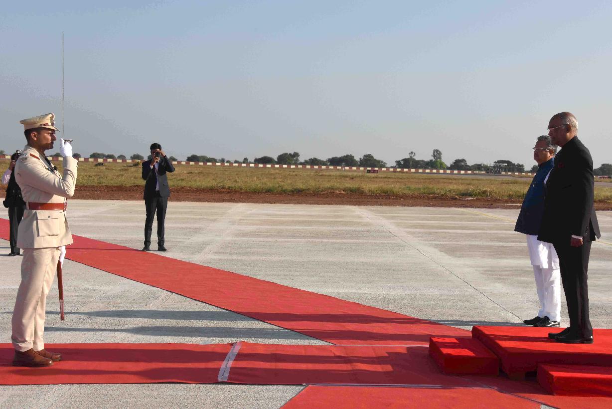 | Caption: | The President of India, Shri Ram Nath Kovind inspecting the Guard of Honour, on his arrival, at Raipur Airport, in Chhattisgarh on November 05, 2017. |