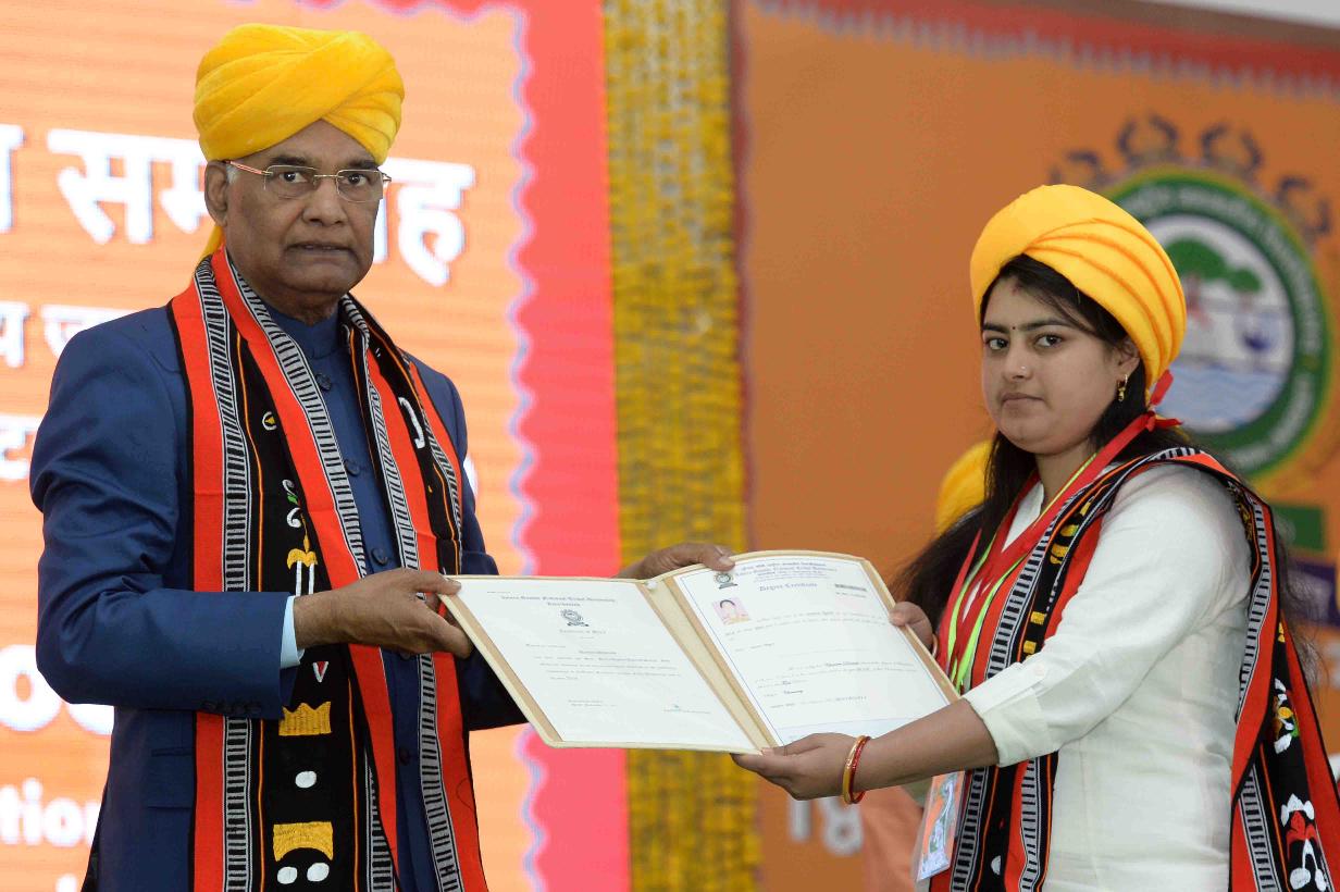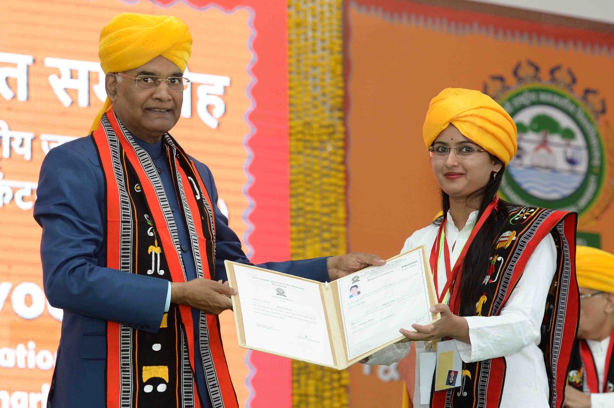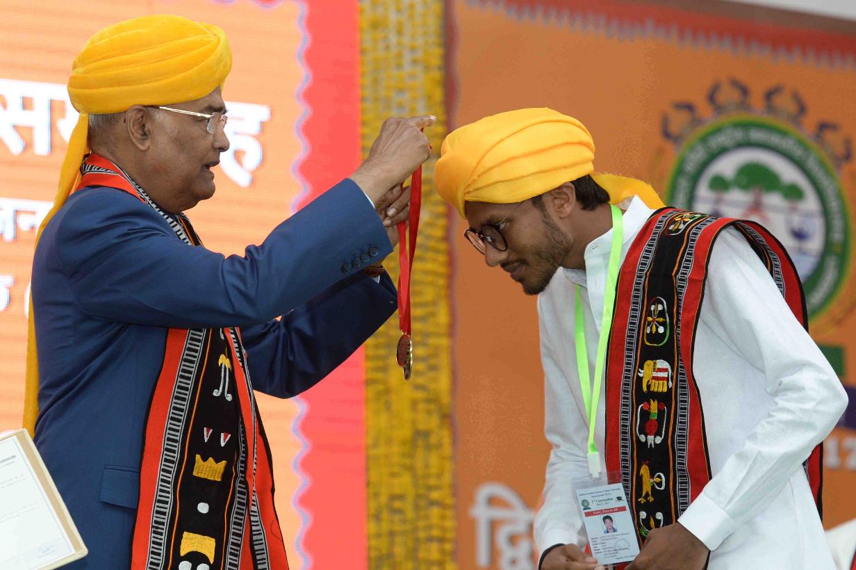 | Caption: | The President of India, Shri Ram Nath Kovind presenting degree certificates and gold medals to the students, at the 2nd convocation of Indira Gandhi National Tribal University (IGNTU), at Amarkantak, in Madhya Pradesh on November 11, 2017. |