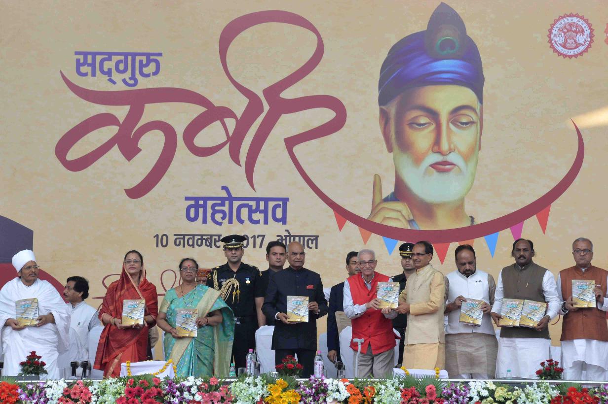 | Caption: | The President of India, Shri Ram Nath Kovind receiving the first copy of the book Madhya Pradesh Mein Kabir , at the Sadguru Kabir Mahotsav, at Bhopal, in Madhya Pradesh on November 10, 2017. |
