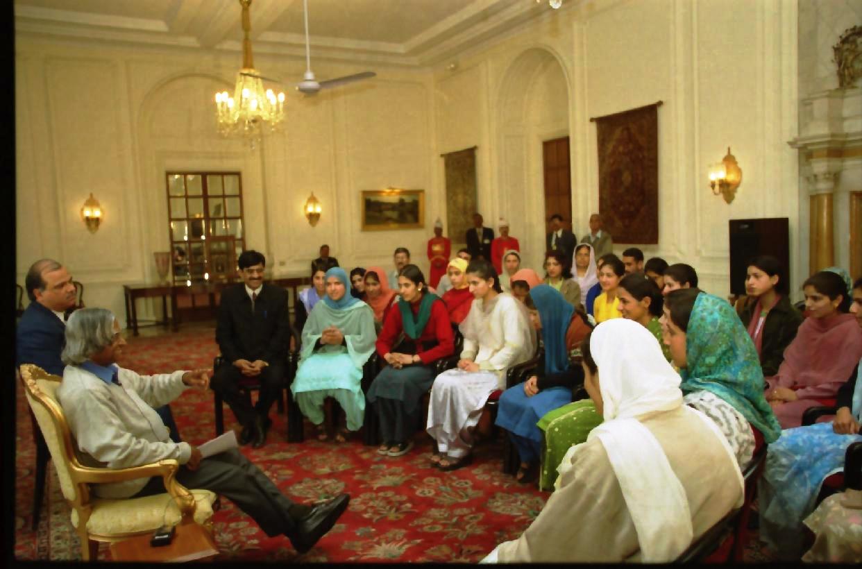 | Caption: | The Students and Teachers from the Various School of Jammu and Kashmir calling on the President of India, Dr A P J Abdul Kalam at the Yellow Drawing Room of Rashtrapati Bhavan in New Delhi on Feb 01, 2003 |