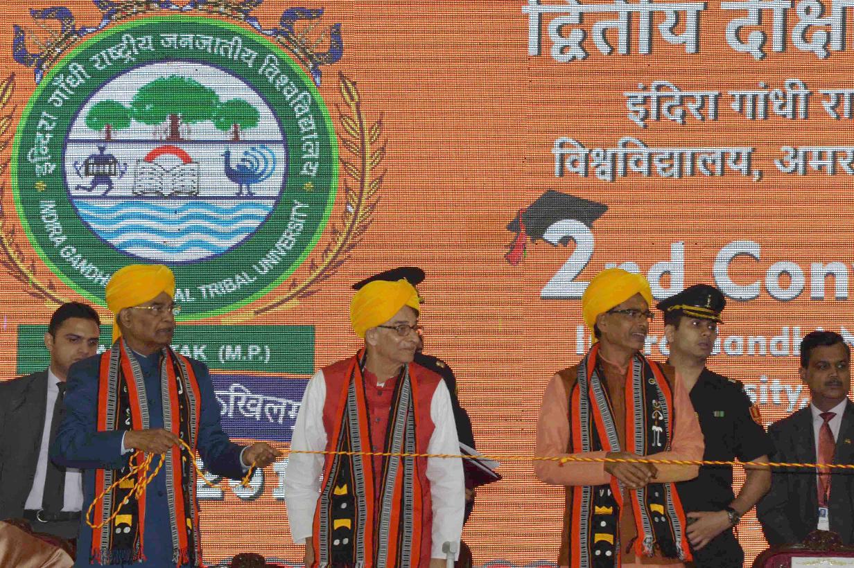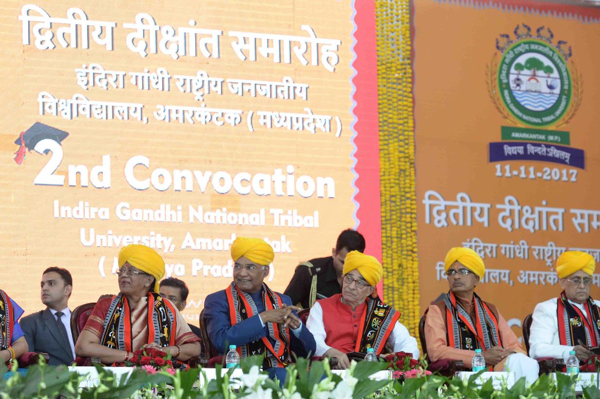 | Caption: | The President of India, Shri Ram Nath Kovind gracing the 2nd convocation of Indira Gandhi National Tribal University (IGNTU), at Amarkantak, in Madhya Pradesh on November 11, 2017. |