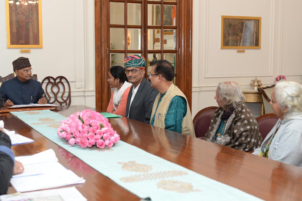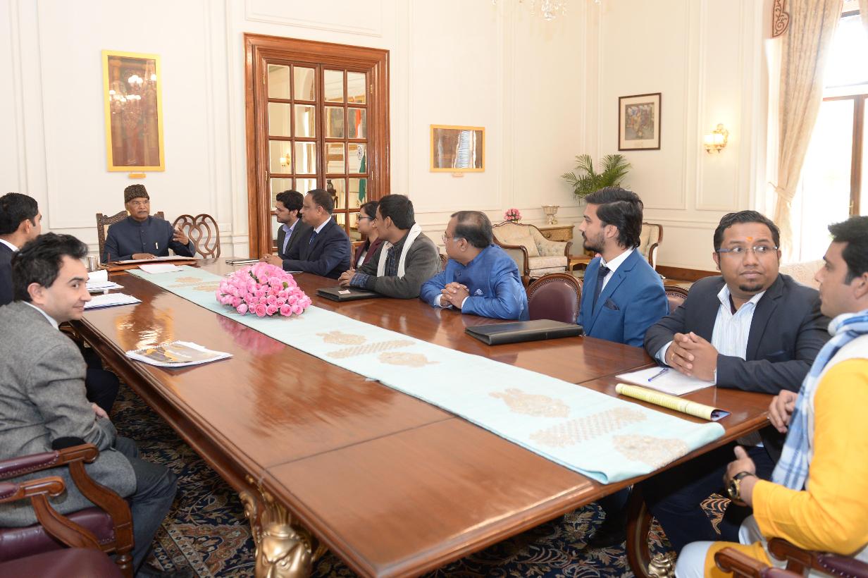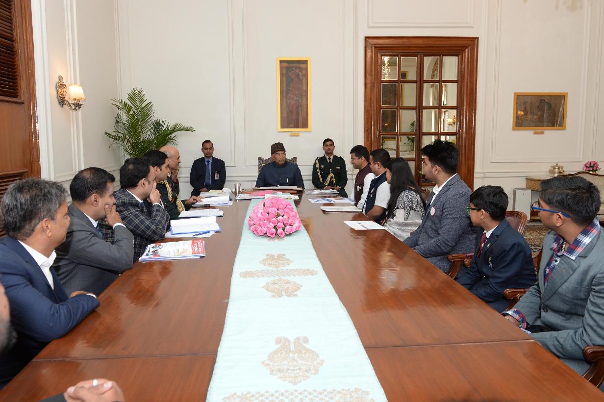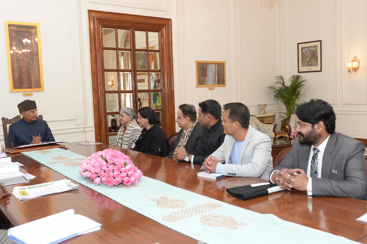 | Caption: | The President of India, Shri Ram Nath Kovind interacting with persons who have excelled in their respective field, at Rashtrapati Bhavan on January 03, 2020. |
