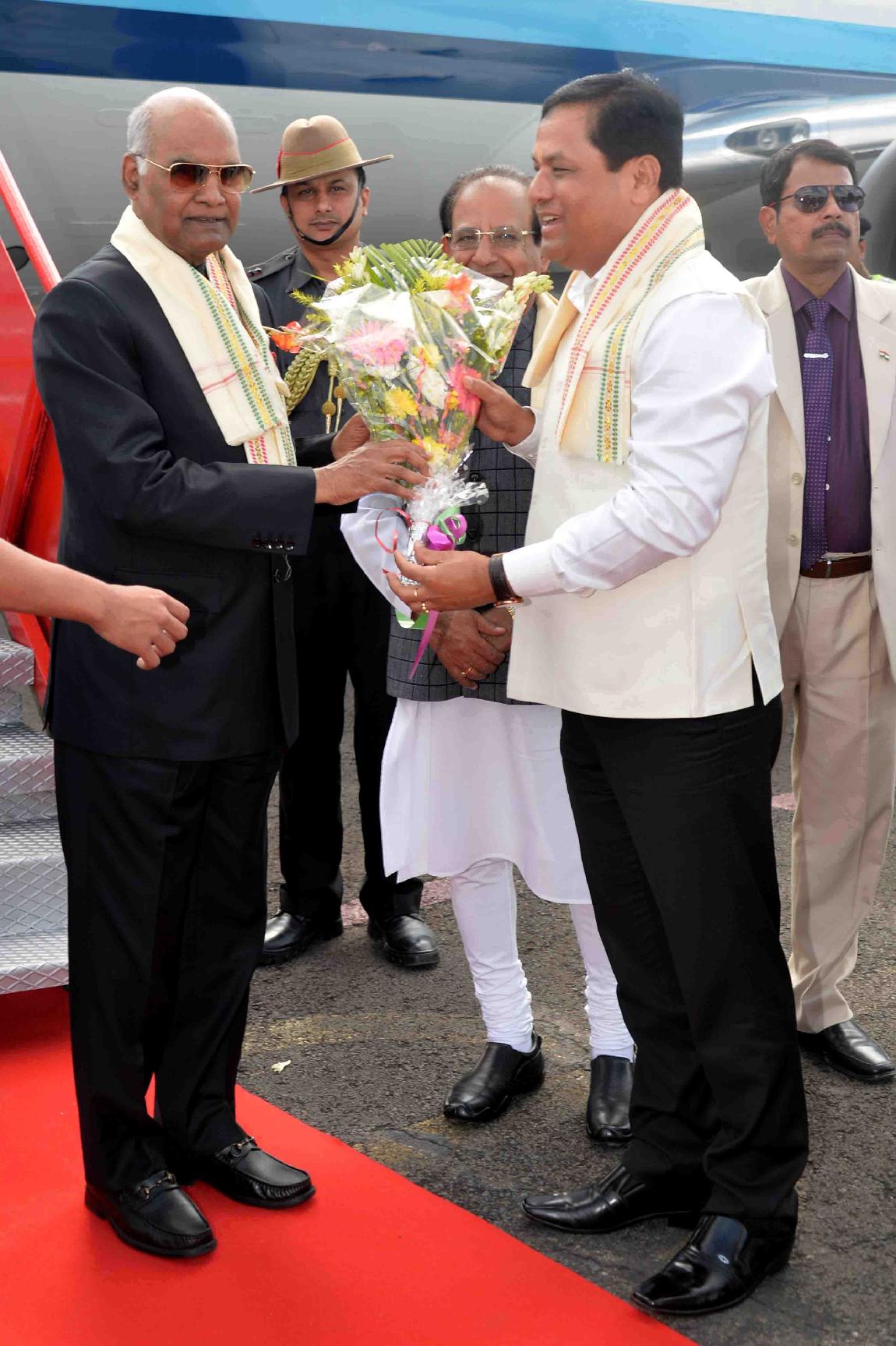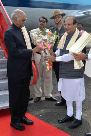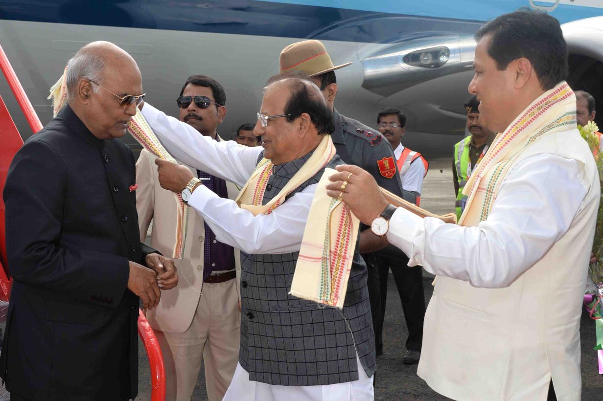 | Caption: | The President of India, Shri Ram Nath Kovind being received by the Governor of Assam, Prof. Jagdish Mukhi and the Chief Minister of Assam, Shri Sarbananda Sonowal, on his arrival at Silchar Airport, in Assam on November 20, 2017. |