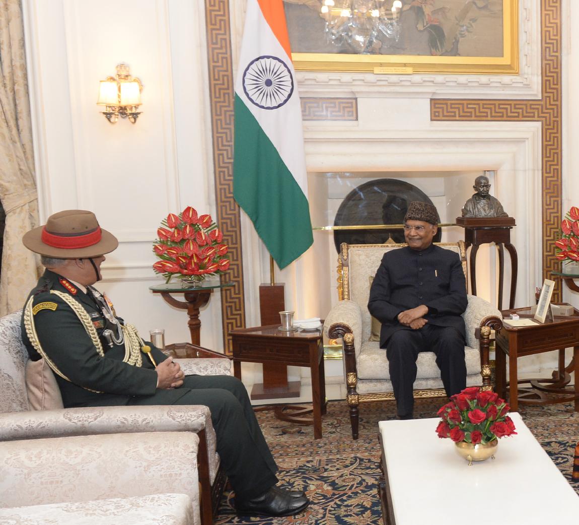 | Caption: | The Chief of Army Staff, General Bipin Rawat along with his wife Smt. Madhulika Rawat meeting with the President of India, Shri Ram Nath Kovind, at Rashtrapati Bhavan on December 30, 2019. |