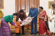 | Caption: | His Majesty Jigme Khesar Namgyel Wangchuck, the King of Bhutan, along with Her Majesty the Queen and the Royal Prince of Bhutan calling on the President of India, Shri Ram Nath Kovind, at Rashtrapati Bhavan on November 01, 2017. |