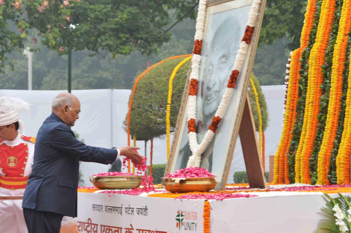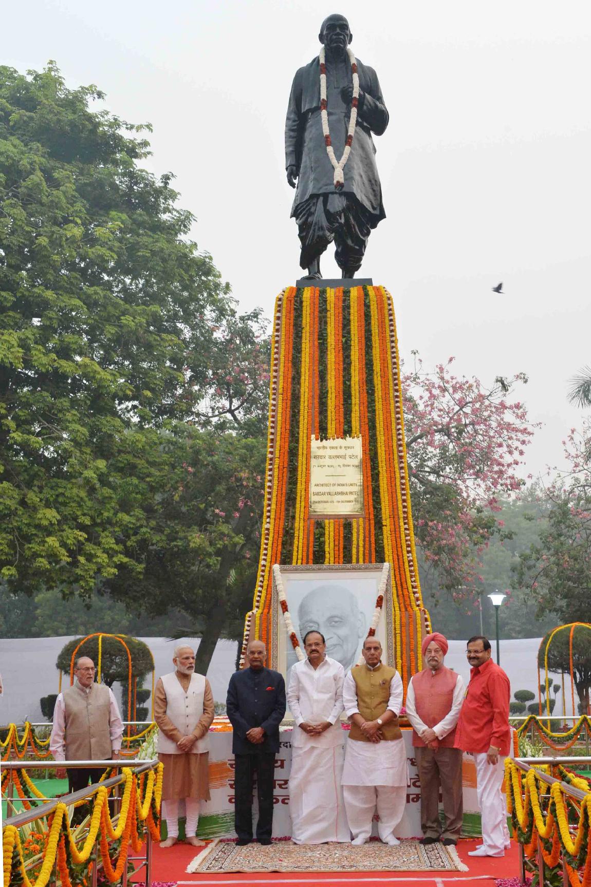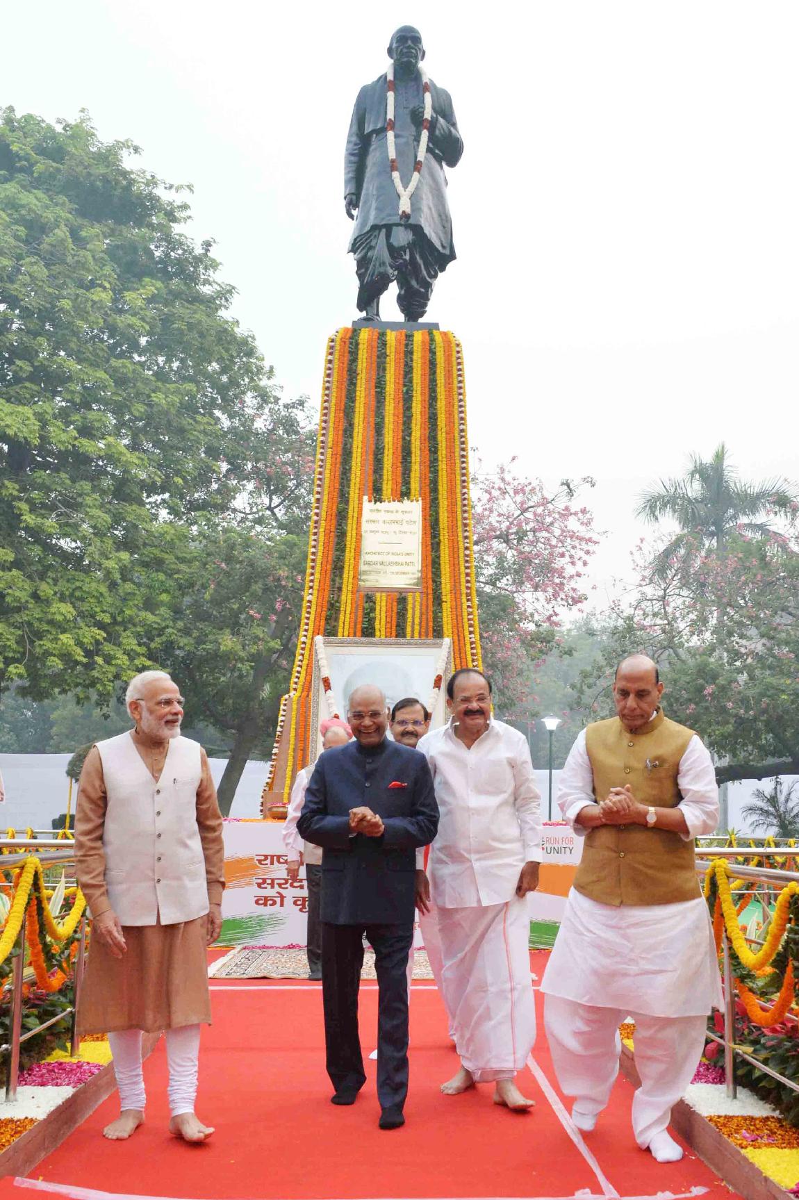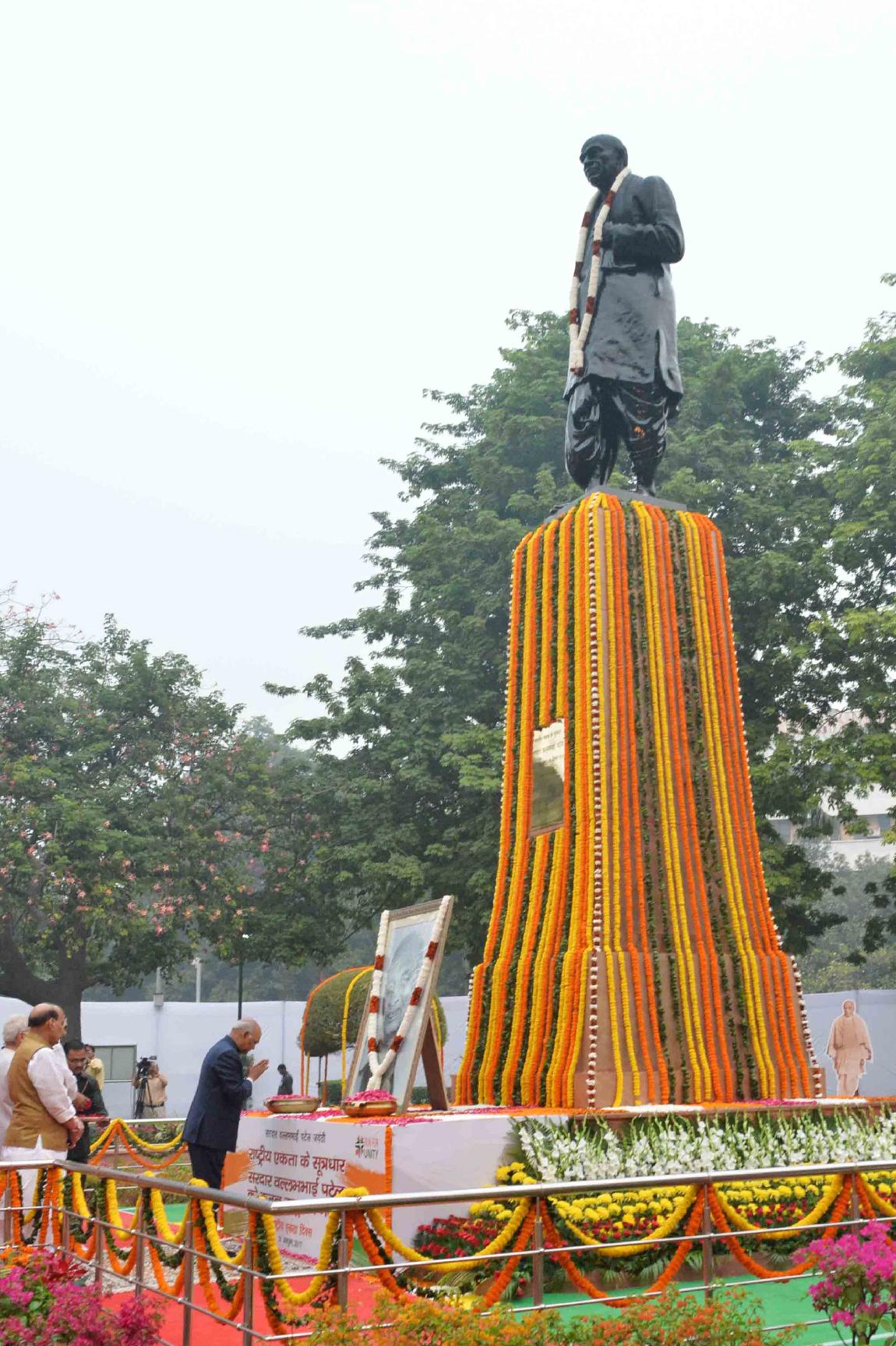 | Caption: | The President of India, Shri Ram Nath Kovind paying floral tributes at the statue of Sardar Vallabhbhai Patel, on the occasion of his Birth Anniversary, in New Delhi on October 31, 2017. |