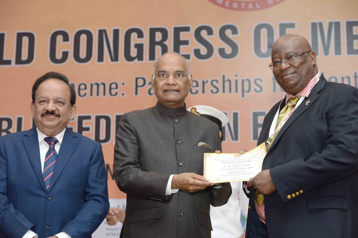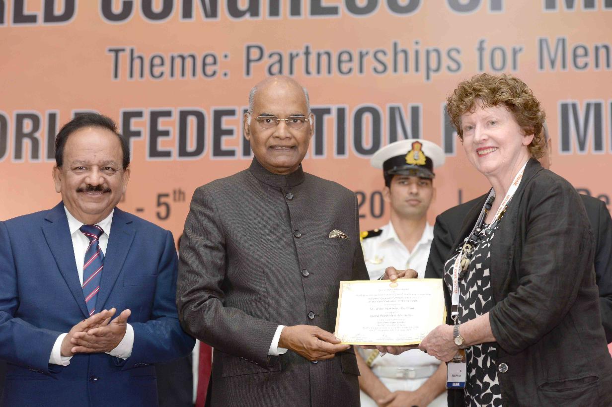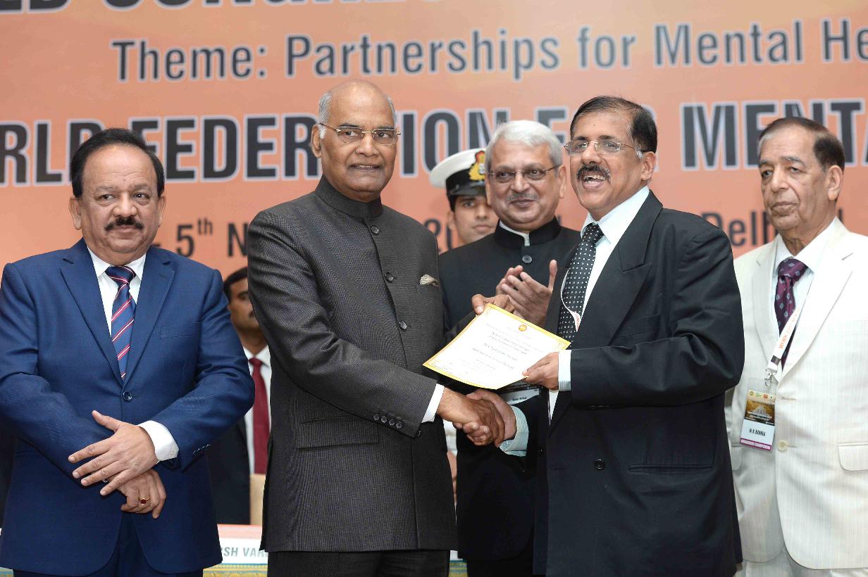 | Caption: | The President of India, Shri Ram Nath Kovind presenting special appreciation award, at the inauguration of the 21st World Congress of Mental Health, organised by the World Federation for Mental Health, in New Delhi on November 02, 2017. |