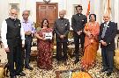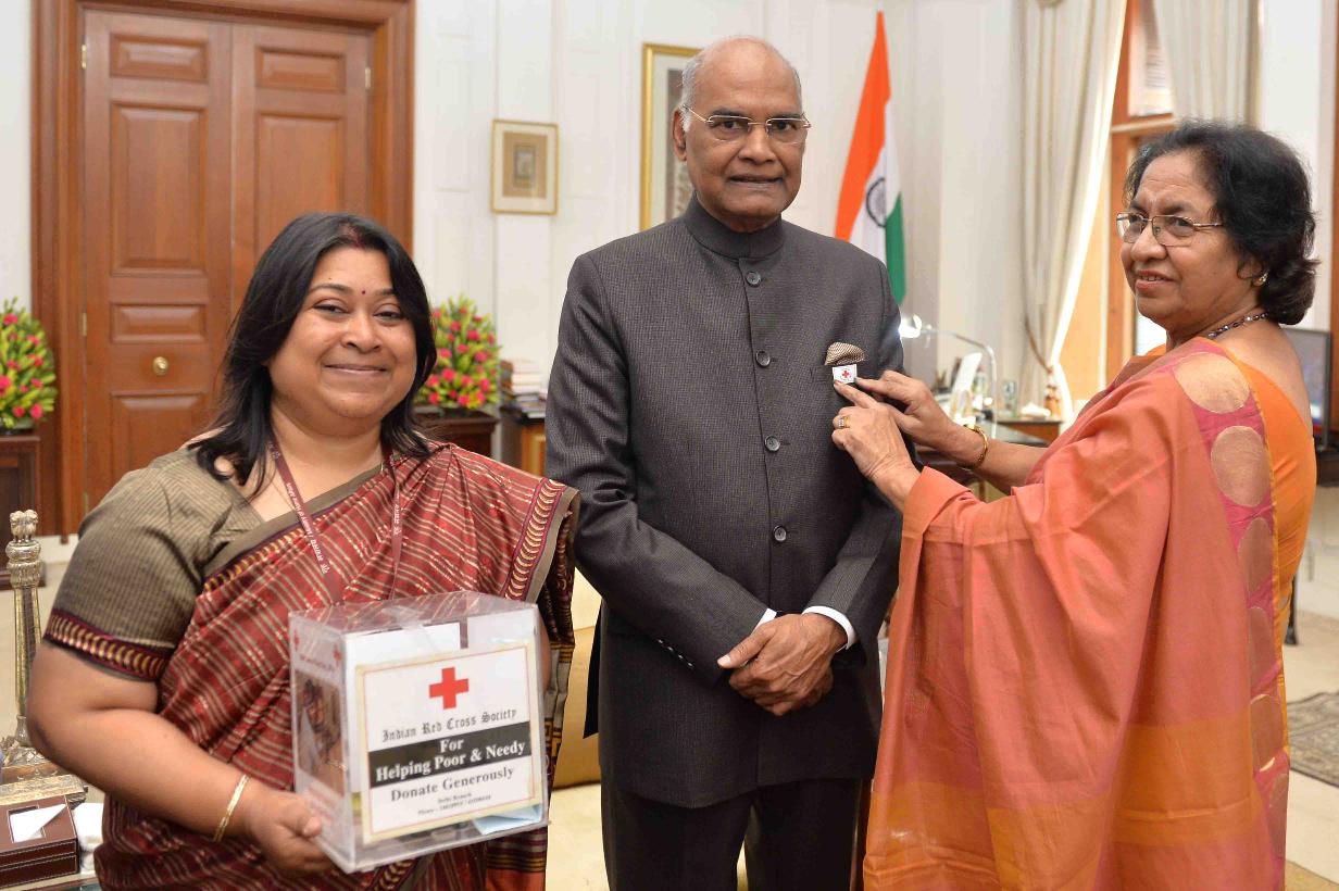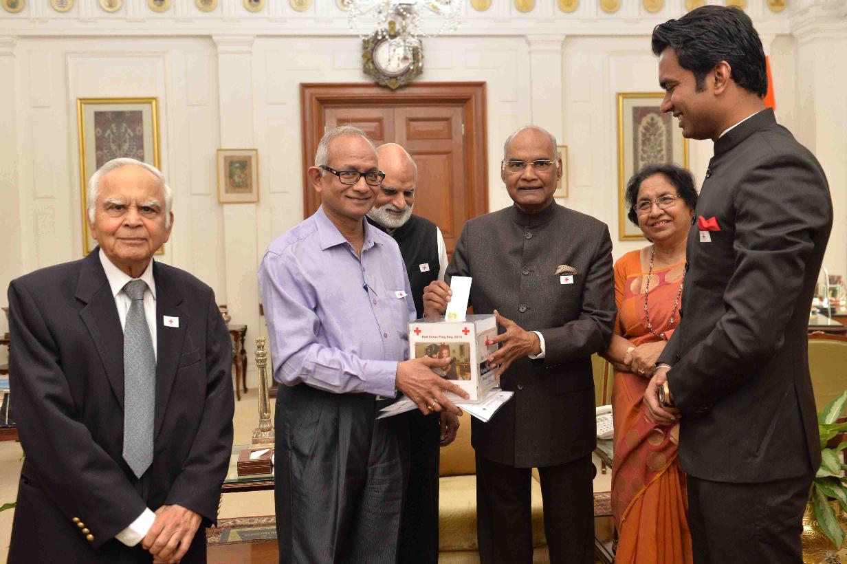 | Caption: | Shri Abhishek Singh, Secretary along with the members from Indian Red Cross Society meeting with the President of India, Shri Ram Nath Kovind to pin a flag on the occasion of Red Cross Flag Week, at Rashtrapati Bhavan on November 02, 2017. |