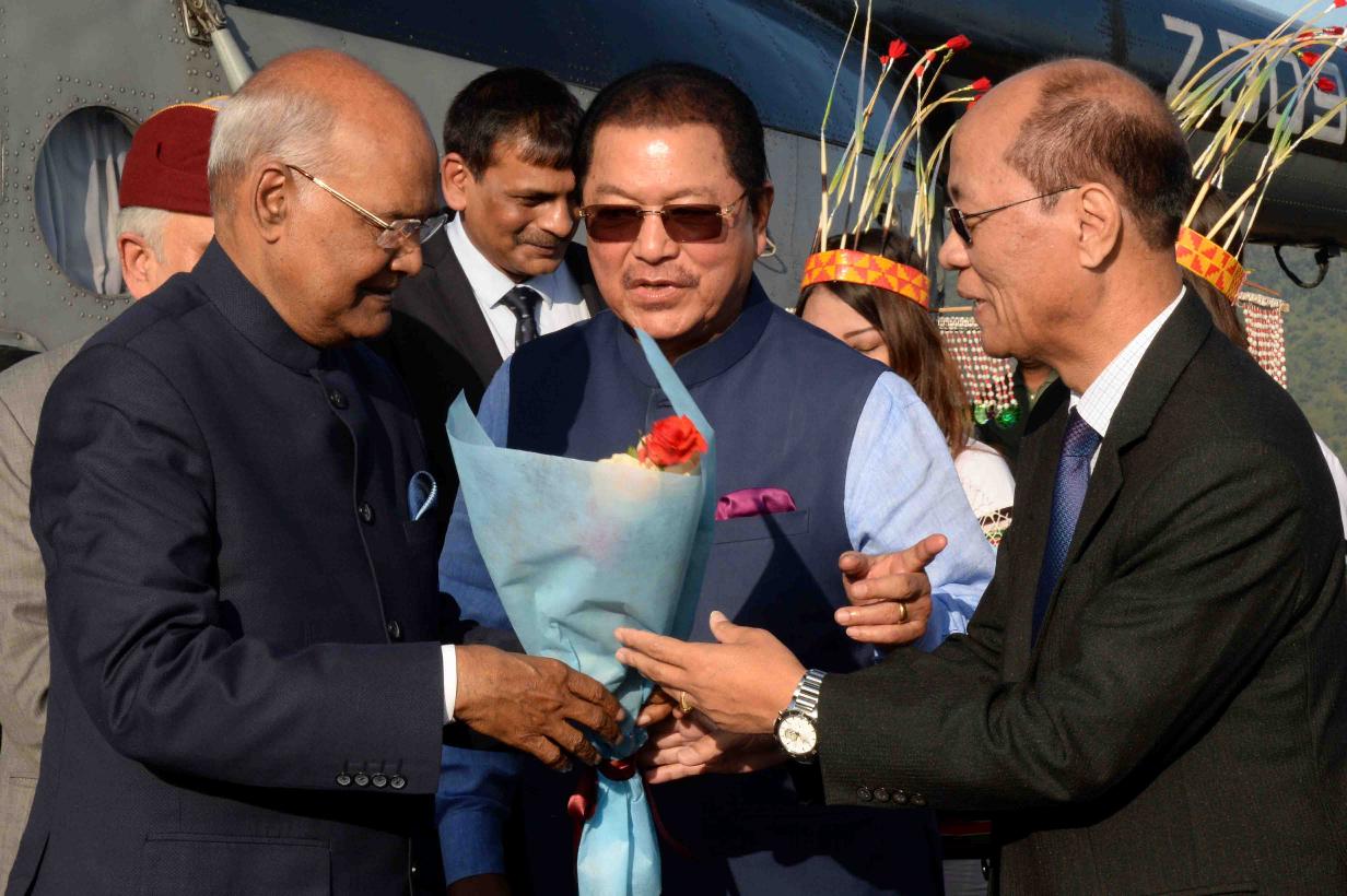 | Caption: | The President of India, Shri Ram Nath Kovind being received by the Mizoram Governor, Lt. General (Retd) Nirbhay Sharma and the Mizoram Chief Minister, Shri Lal Thanhawla, on his arrival, at Lengpui Airport, in Aizawl, Mizoram on November 29, 2017. |