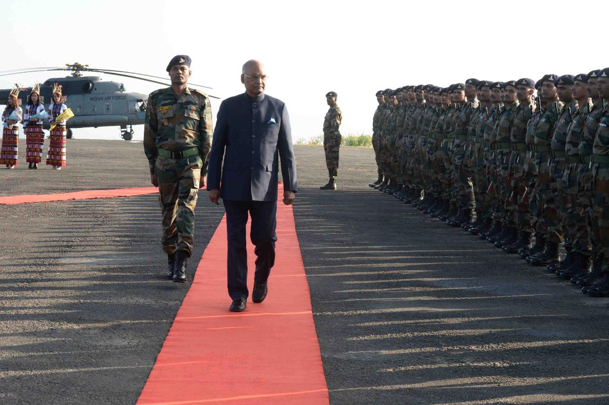 | Caption: | The President of India, Shri Ram Nath Kovind inspecting the Guard of Honour, on his arrival, at Lengpui Airport, in Aizawl, Mizoram on November 29, 2017. |
