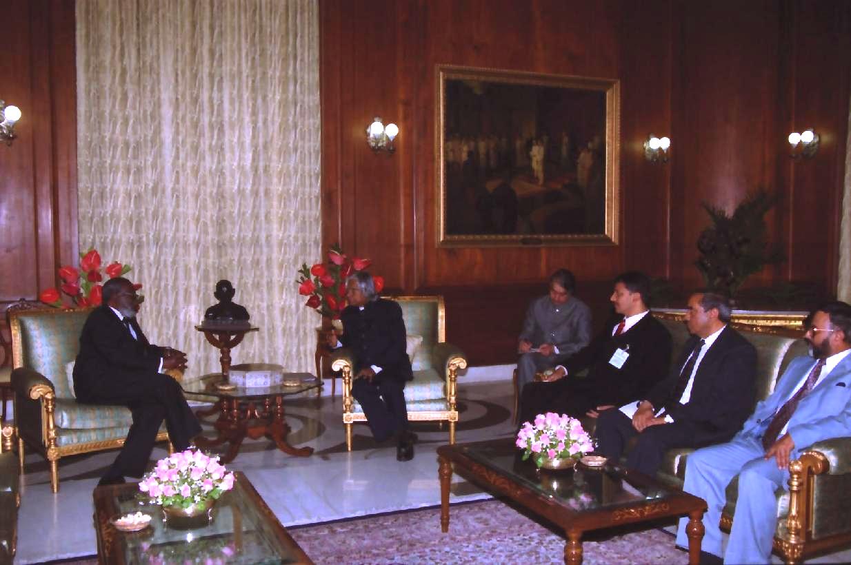 | Caption: | The President of the Republic of Namibia His Excellency Dr Sam Nujoma calling on the President of India, Dr A P J Abdul Kalam at the North Drawing Room of Rashtrapati Bhavan in New Delhi on Feb 27, 2003 |