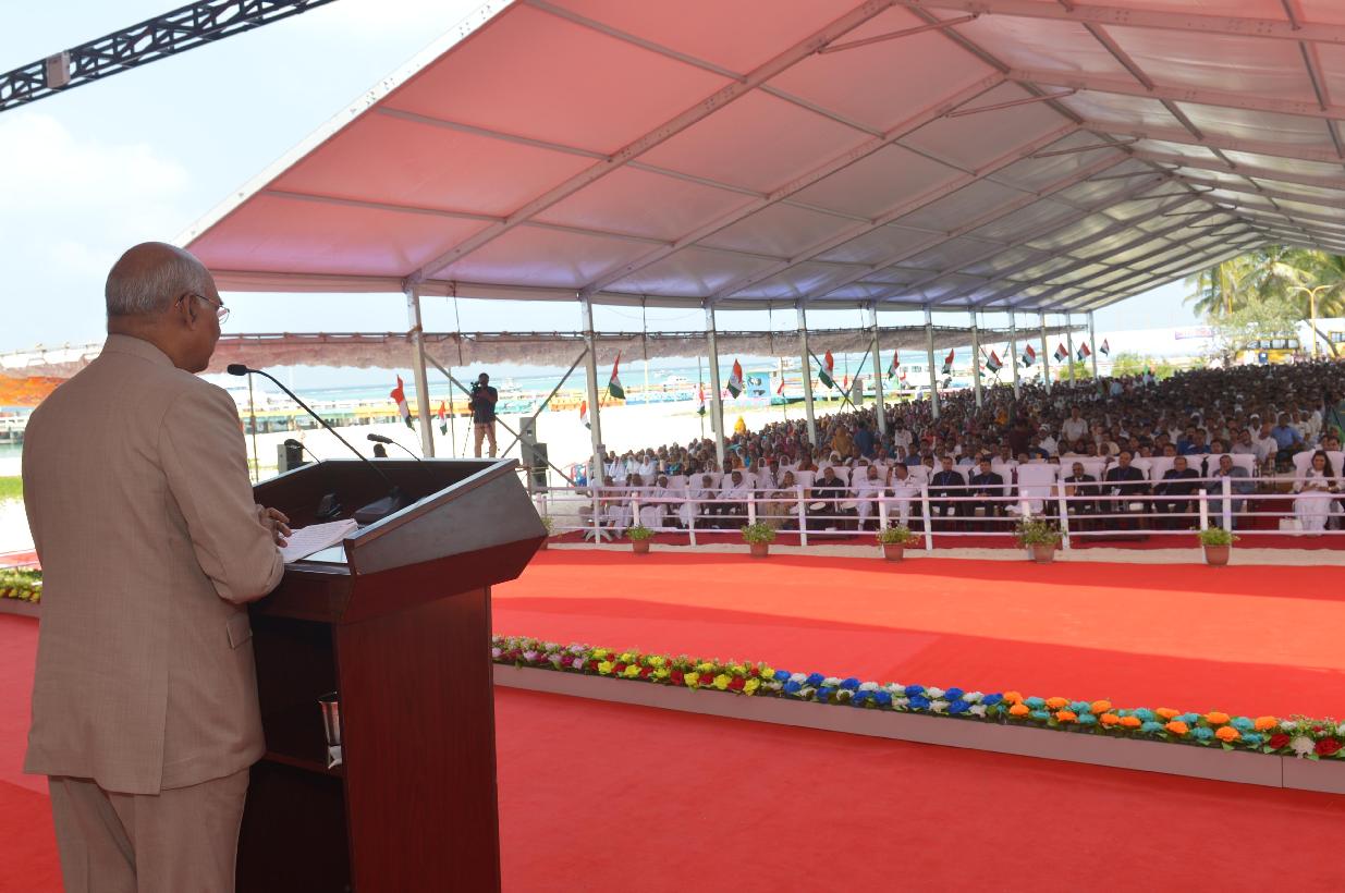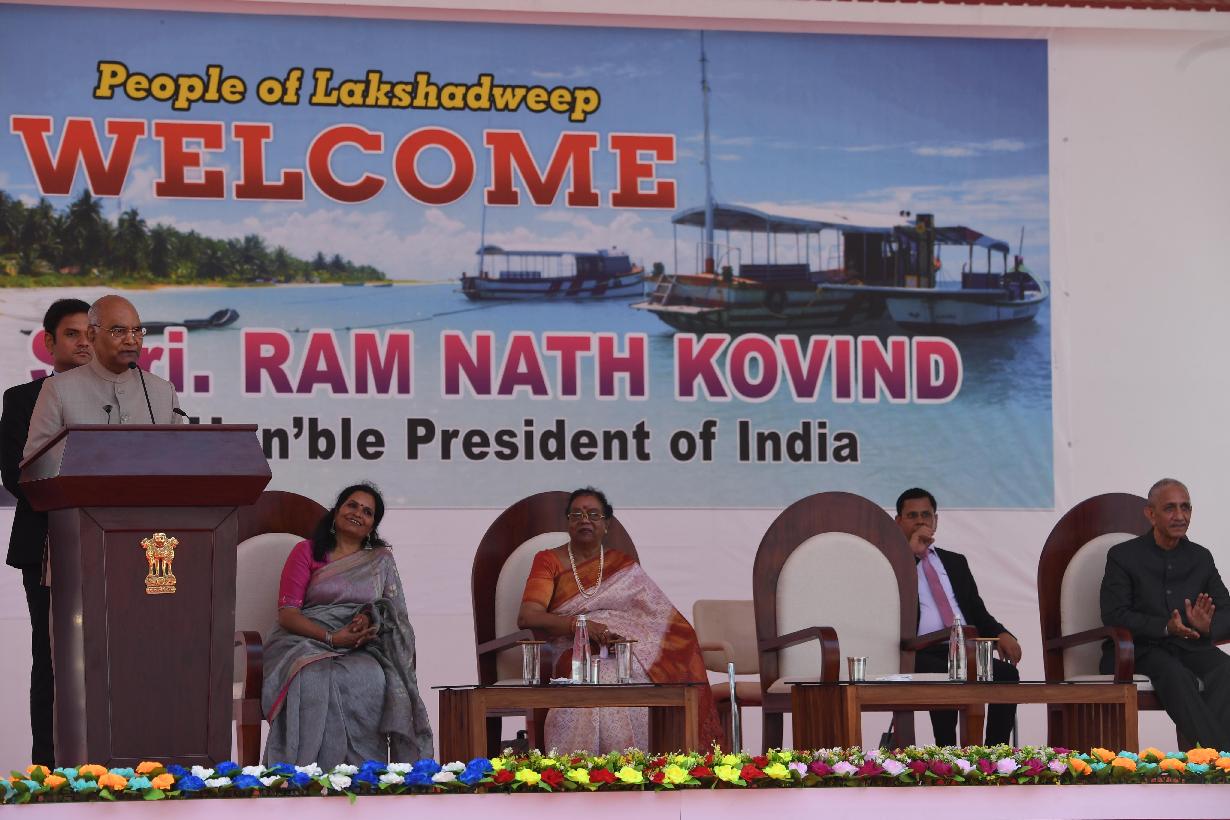 | Caption: | The President of India, Shri Ram Nath Kovind attended a public reception and laid the foundation stone of the super-specialty Hospital at Kavaratti, in Lakshadweep on January 07, 2020. |