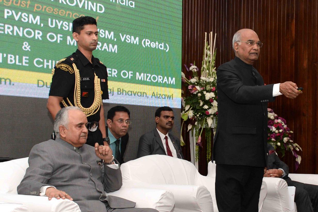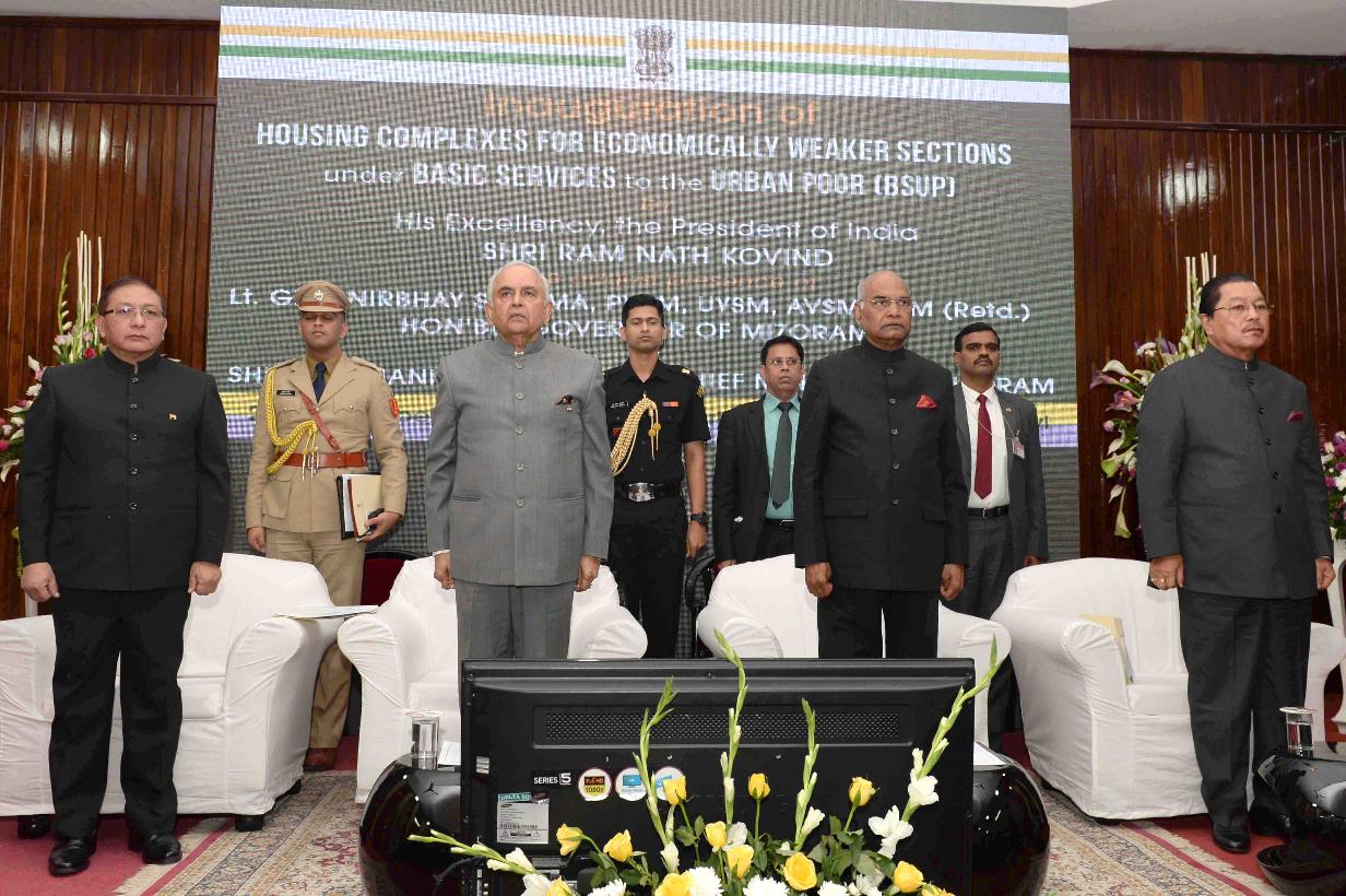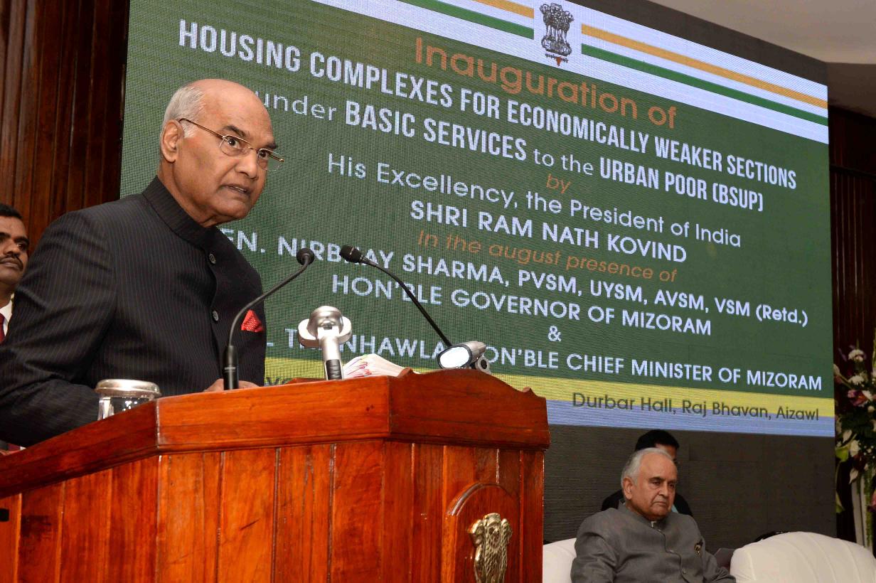 | Caption: | The President of India, Shri Ram Nath Kovind inaugurating the housing complexes for economically weaker sections under Basic Services to Urban Poor (BSUP) Schemes, at Aizawl, in Mizoram on November 29, 2017. |