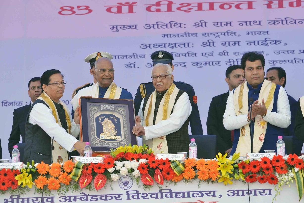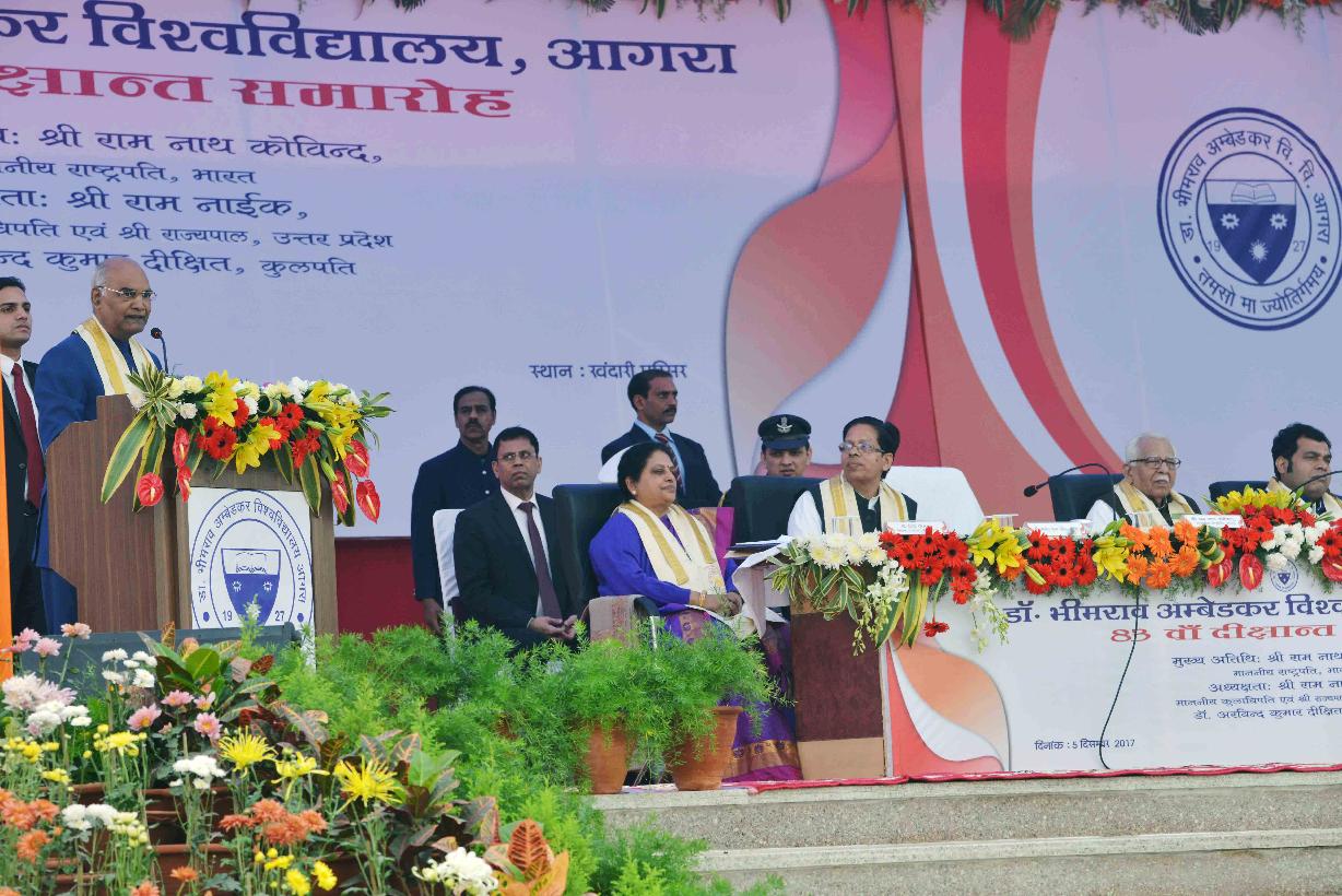 | Caption: | The President of India, Shri Ram Nath Kovind addressing the 83rd Convocation of Dr. Bhimrao Ambedkar University, in Agra, Uttar Pradesh on December 05, 2017. |