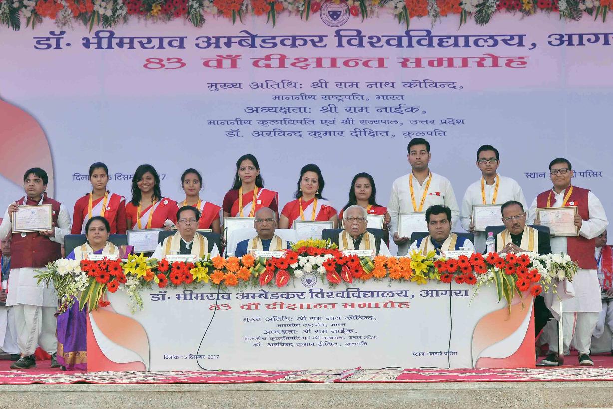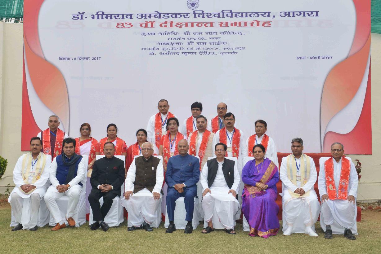 | Caption: | The President of India, Shri Ram Nath Kovind with the Gold Medalist students of the University and recipients of Honoris Causa, at the 83rd Convocation of Dr. Bhimrao Ambedkar University, in Agra, Uttar Pradesh on December 05, 2017. |