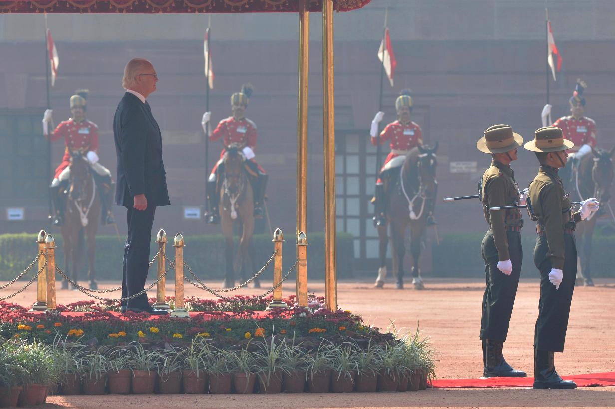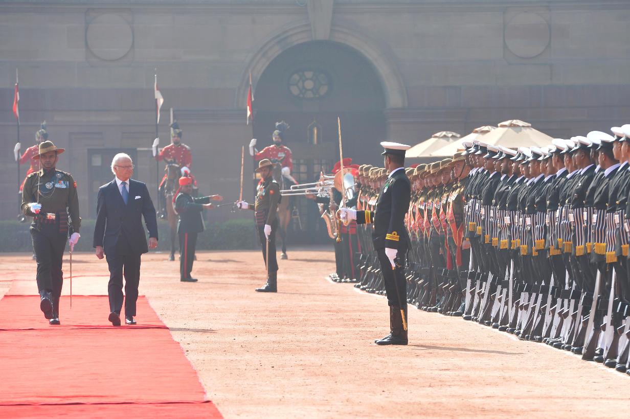 | Caption: | The President of India, Shri Ram Nath Kovind accords a ceremonial welcome to Their Majesties King Carl XVI Gustaf and Queen Silvia of Sweden, at Rashtrapati Bhavan on December 02, 2019. |